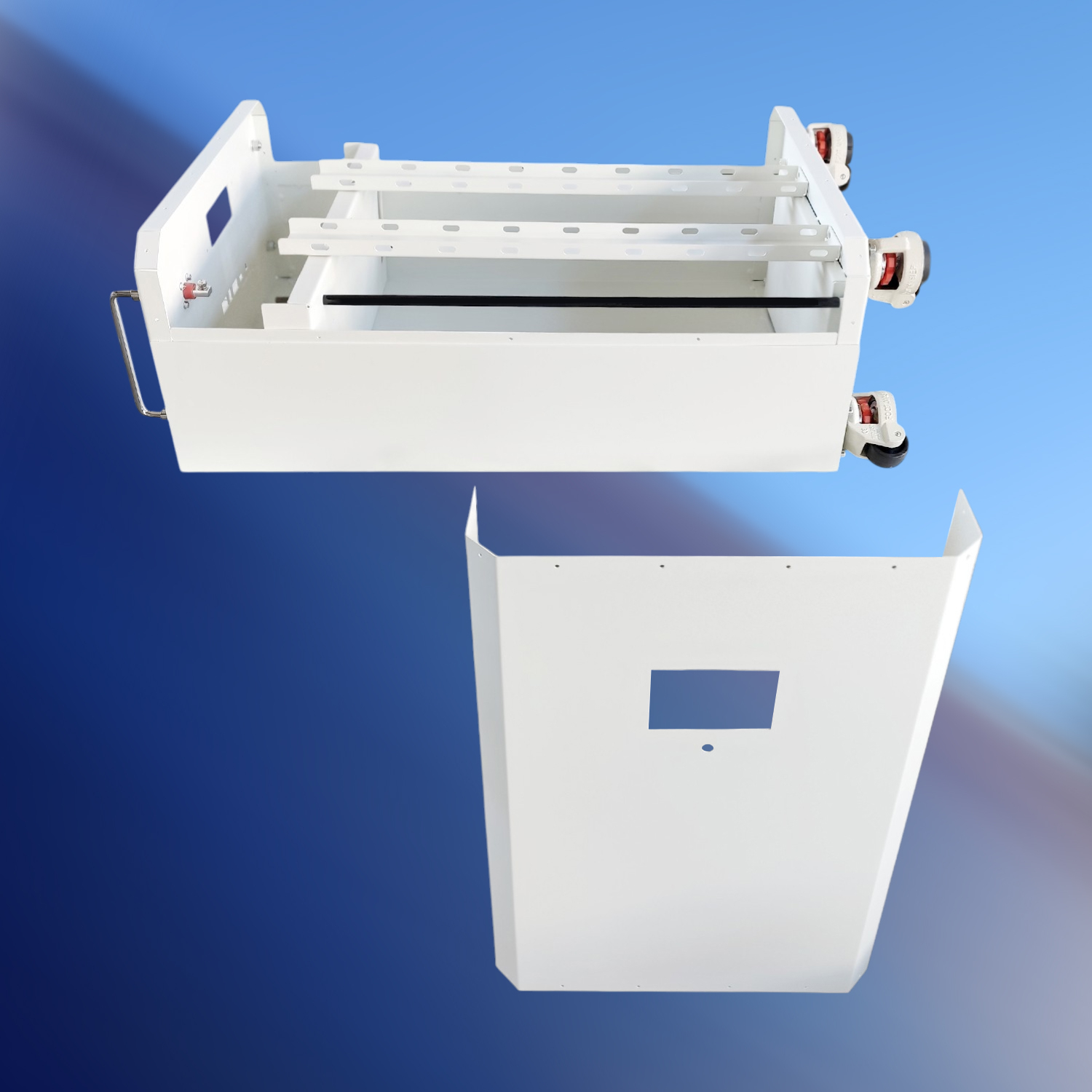 Корпус забезпечує міцний захист акумуляторних елементів, регульовану компресію комірок, зручне компонування всіх складових та простий доступ для монтажу й обслуговування. Завдяки продуманій конструкції всі елементи надійно фіксуються всередині, що підвищує безпеку та довговічність системи.