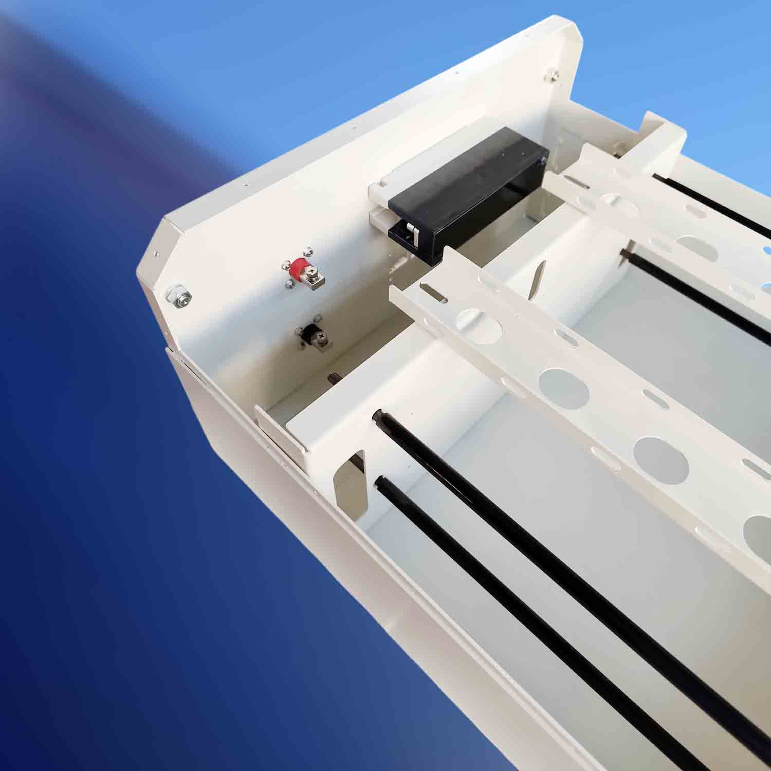 Корпус забезпечує міцний захист акумуляторних елементів, регульовану компресію комірок, зручне компонування всіх складових та простий доступ для монтажу й обслуговування. Завдяки продуманій конструкції всі елементи надійно фіксуються всередині, що підвищує безпеку та довговічність системи.