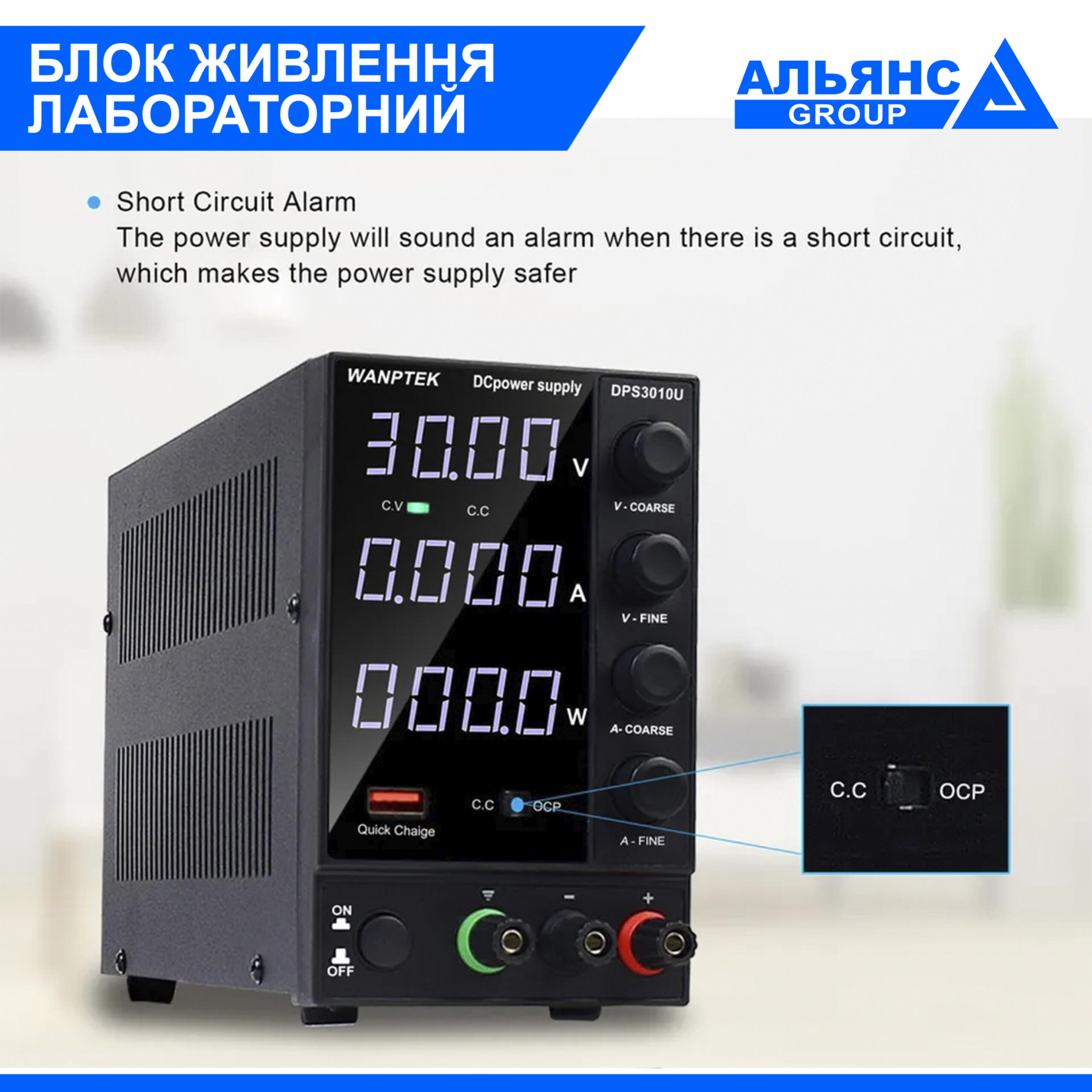Швидка зарядка USB QC3.0, режим контролю перевищення току OCP, чотири багатофункціональних регулятора току/напруги для грубого та точного налаштування. | ||