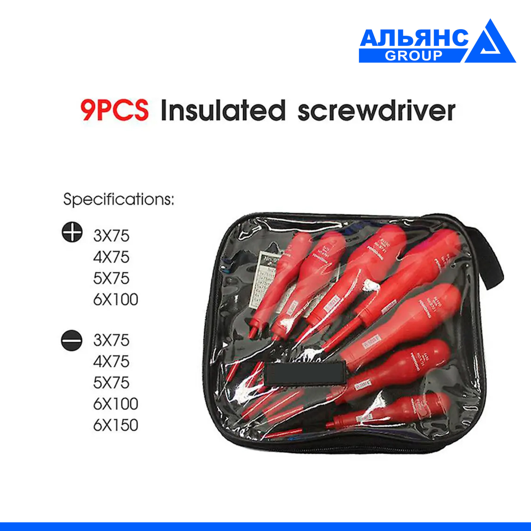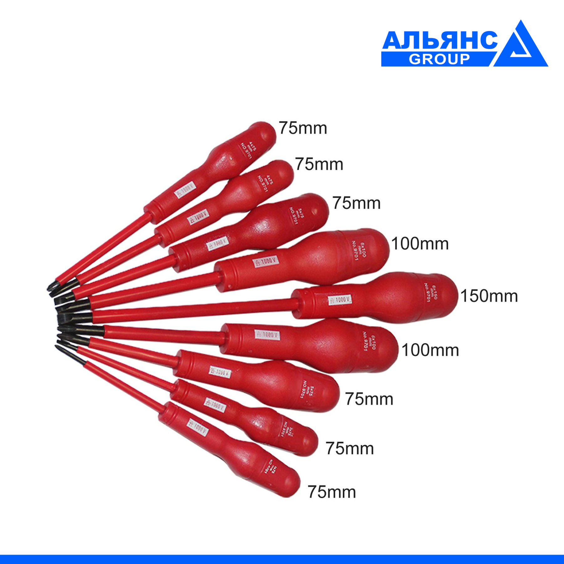 Набір викруток діелектричних 9 одиниць включає в себе: Слот: 3*75 мм 4*75 мм 5*75 мм 6*100 мм 6*150 мм; Phillips: PH3*75мм PH4*75мм PH5*75мм PH6*100мм; Набір включает в себе: