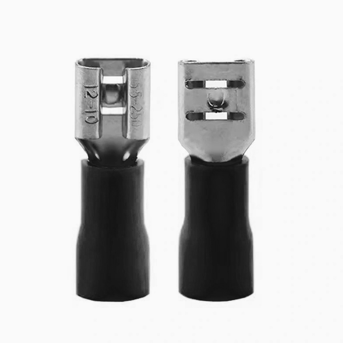 Наконечник конектор FDD2-250 до 2мм², ширина 6,6мм “мама” чорний уп. - 100шт Ця ножова клема ідеально підходить для використання в електротехніці, зборці електричних плат та інших областях, де потрібне надійне та безпечне з'єднання проводів.