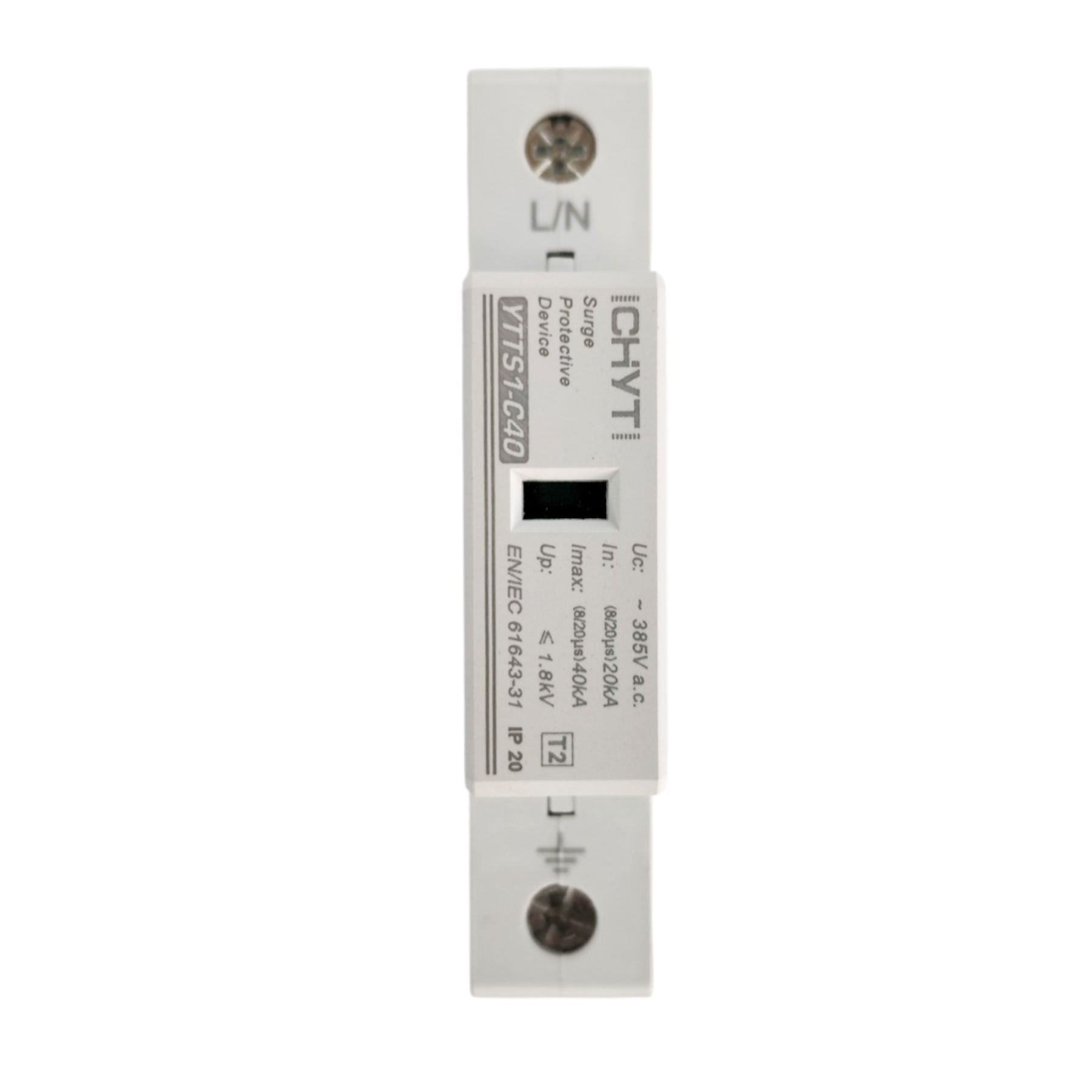 Обмежувач перенапруги SPD AC 285V 20~40KA 1полюс Обмежувач перенапруги постійного струму CHYT 2P 285V — це пристрій для захисту електричних систем від перенапруг, викликаних грозовими розрядами та іншими непередбачуваними подіями. Цей розрядник забезпечує ефективний захист для сонячних електростанцій, систем зберігання енергії та інших пристроїв на постійному струмі. Основні характеристики: Кількість полюсів: 2P Номінальна напруга: 285V AC Номінальний розрядний струм (In): 20kA Максимальний розрядний струм (Imax): 40kA Рівень захисту напруги (Up): ≤ 1.5kV Ступінь захисту корпусу: IP20 Застосування: Захист сонячних панелей у фотоелектричних системах. Захист інверторів та інших компонентів систем постійного струму.