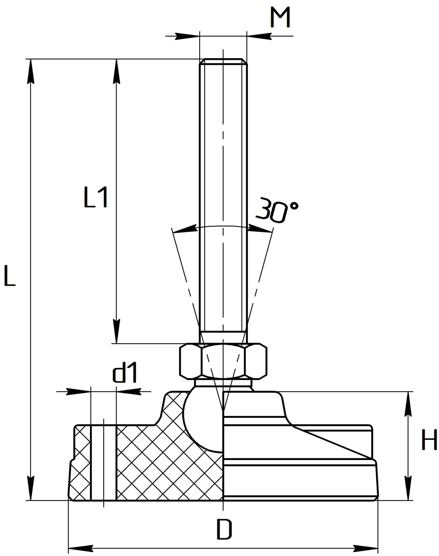 | Опора регульована нейлонова "п'ята" діам. 60мм М12 L=100мм рухома | 60 | 12 | 130 | 100 | 20 | 500 |