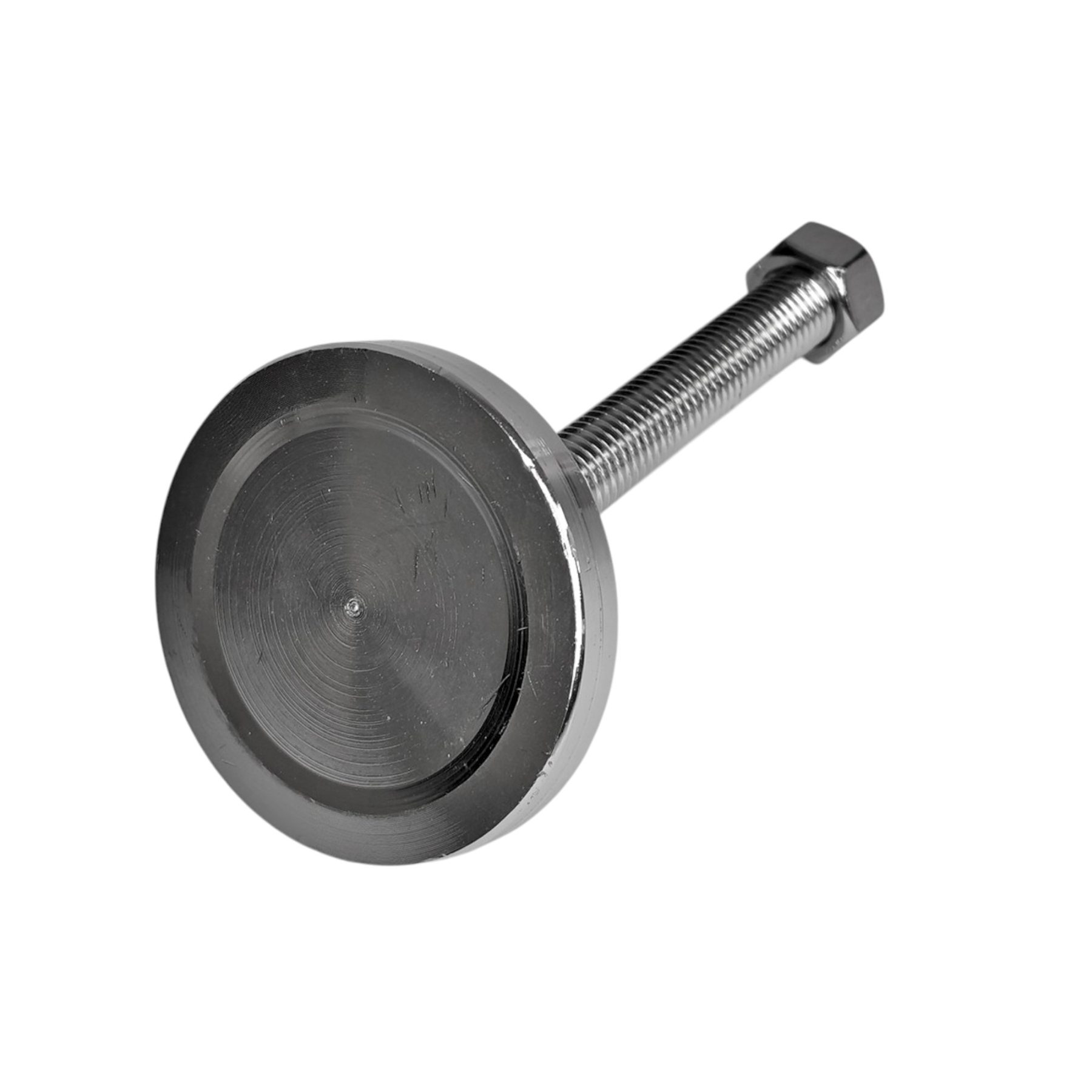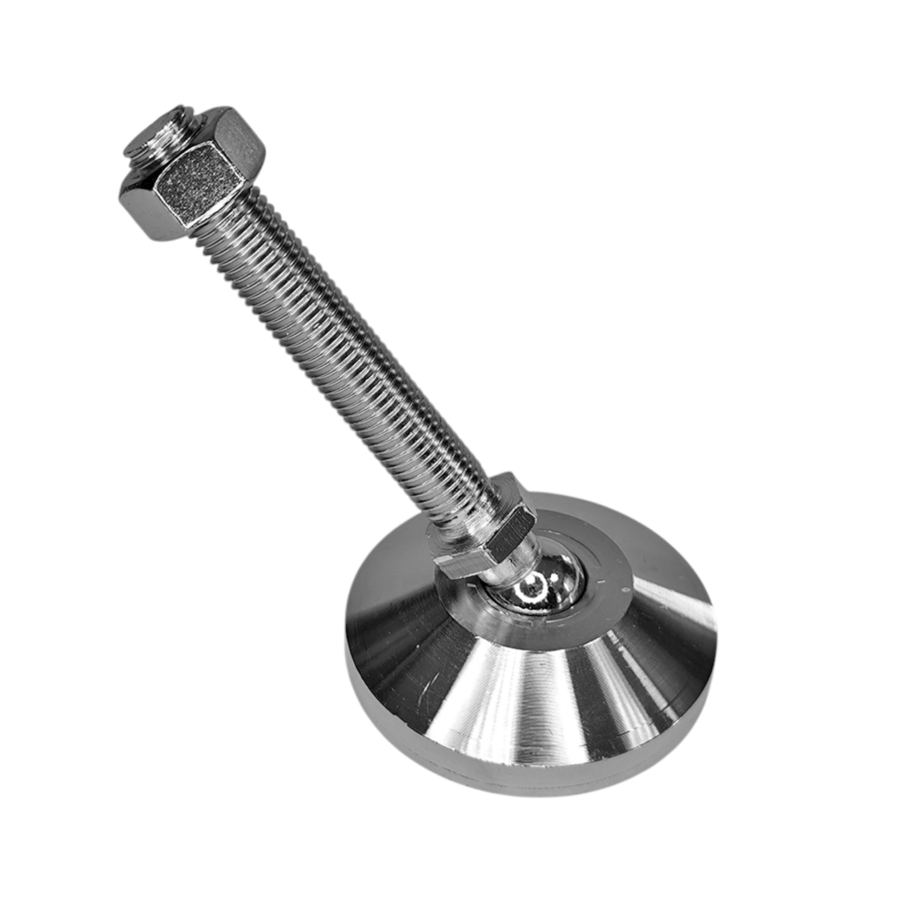 Опора регулюється з нержавіючої сталі діаметром 80 мм, M16, L = 100 мм, для верстатів, столів та іншого обладнання. Завдання конструкції та жорсткого механізму дозволяють постійно змінювати положення на дуже нерівній поверхні з переходами та нахилами.