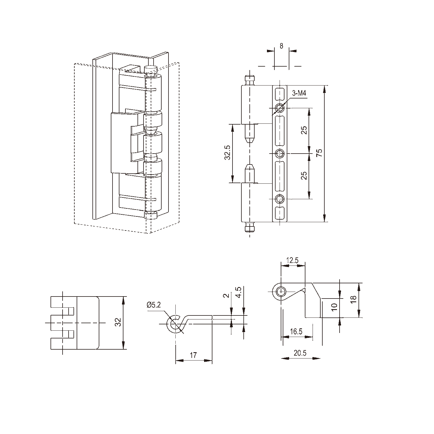 Петлі сталеві приховані для металевих шаф код CL-201-2А