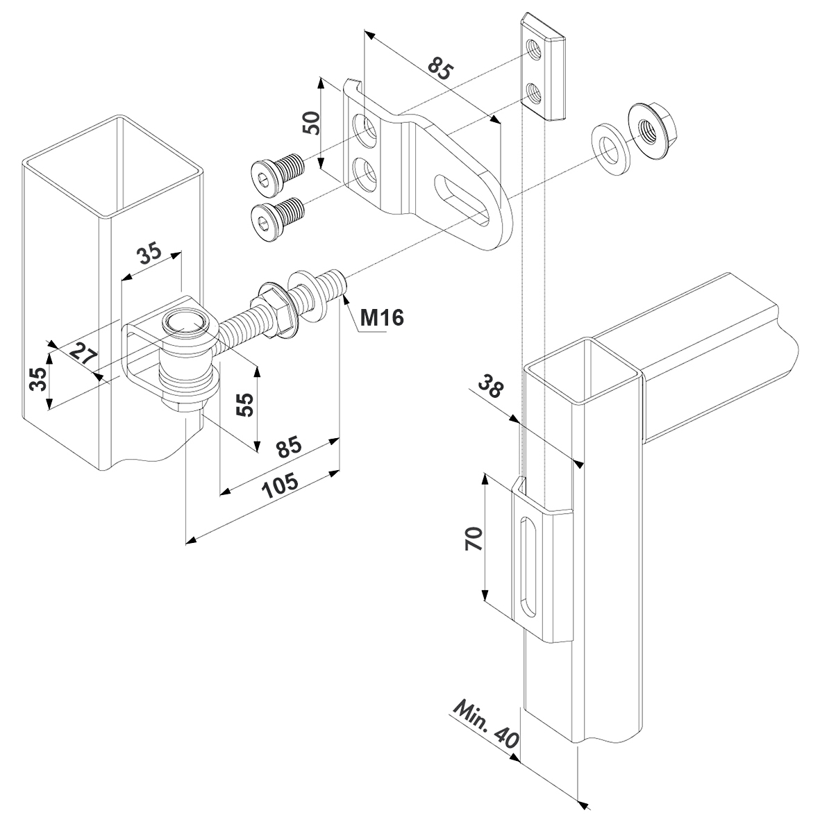 | Петля 2ступ. (JL84A) | M16 | 85 | 110 | 50 | 35 | 6 | 3 | 5 |