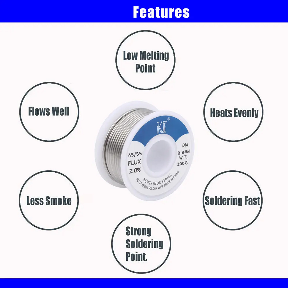 Припой Kewei Sn60Pb40 (ПОС-60 олов'яно-свинцевий) з флюсом діам. 1.0мм 200гр. Призначений для паяння радіоелектронних компонентів на монтажні плати, спаювання між собою проводів та інших подібних операцій.