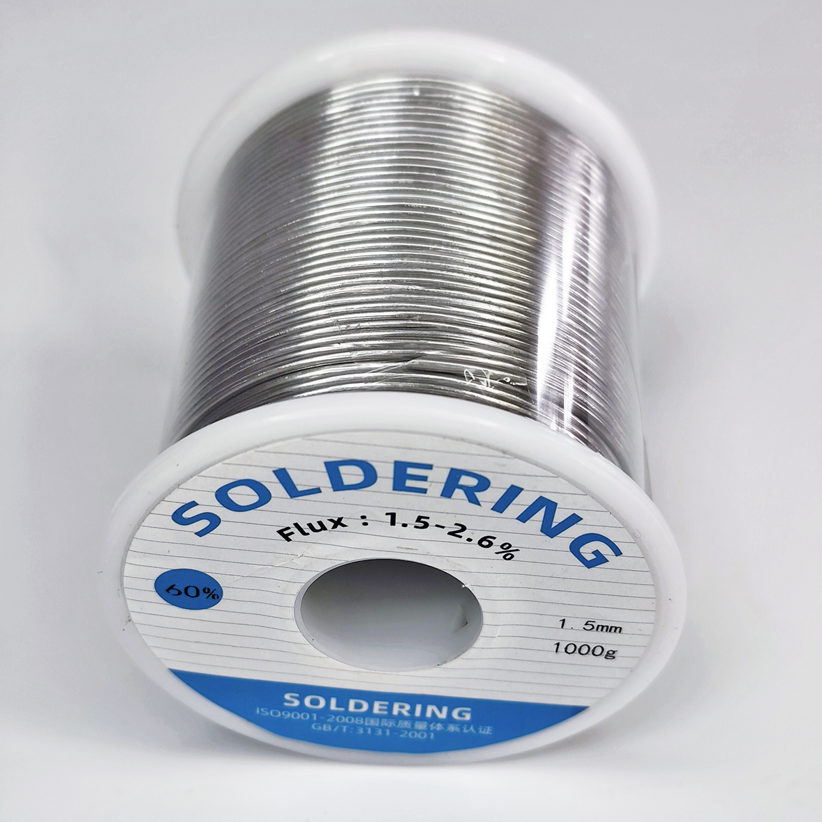 Припой Kewei Sn60Pb40 (ПОС-60 олов'яно-свинцевий) з флюсом діам. 1.5мм 1000гр. Призначений для паяння радіоелектронних компонентів на монтажні плати, спаювання між собою проводів та інших подібних операцій.