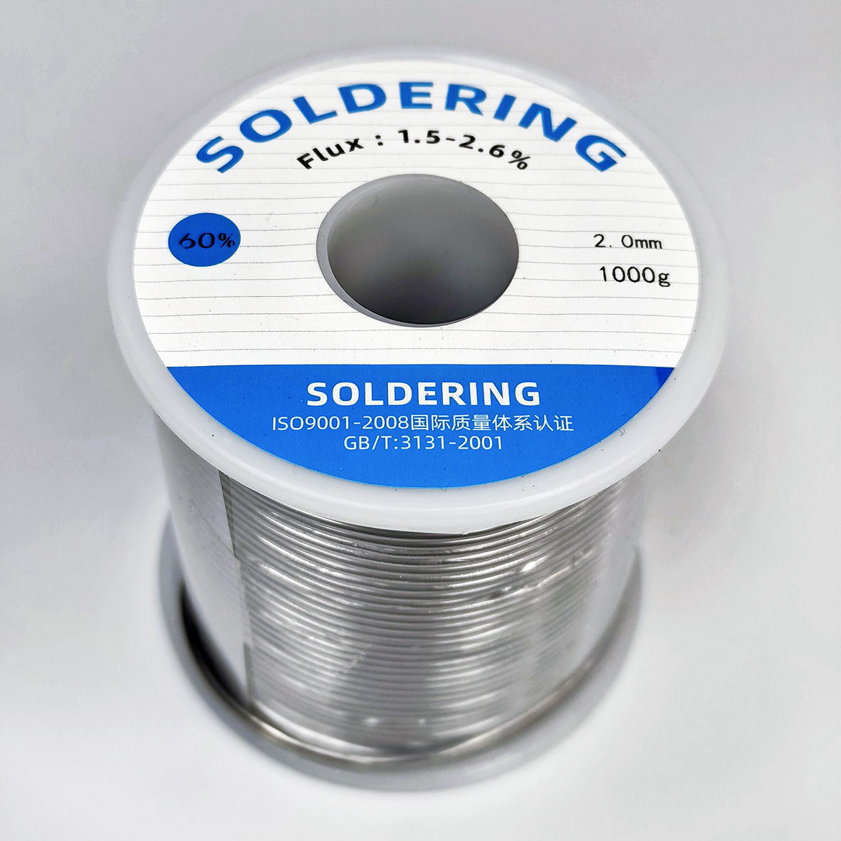 Припой Kewei Sn60Pb40 (ПОС-60 олов'яно-свинцевий) з флюсом діам. 2.0мм 1000гр. Призначений для паяння радіоелектронних компонентів на монтажні плати, спаювання між собою проводів та інших подібних операцій.