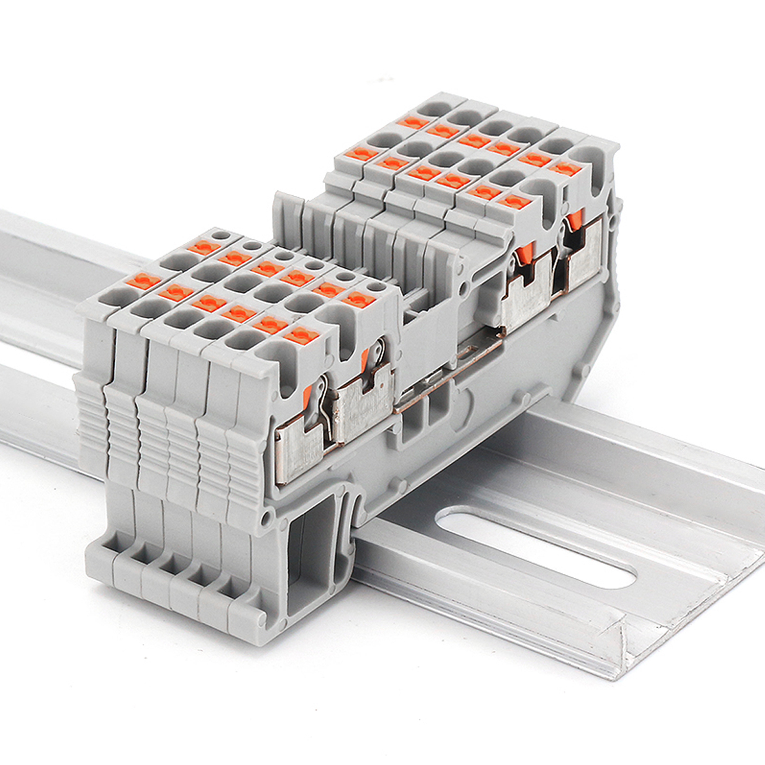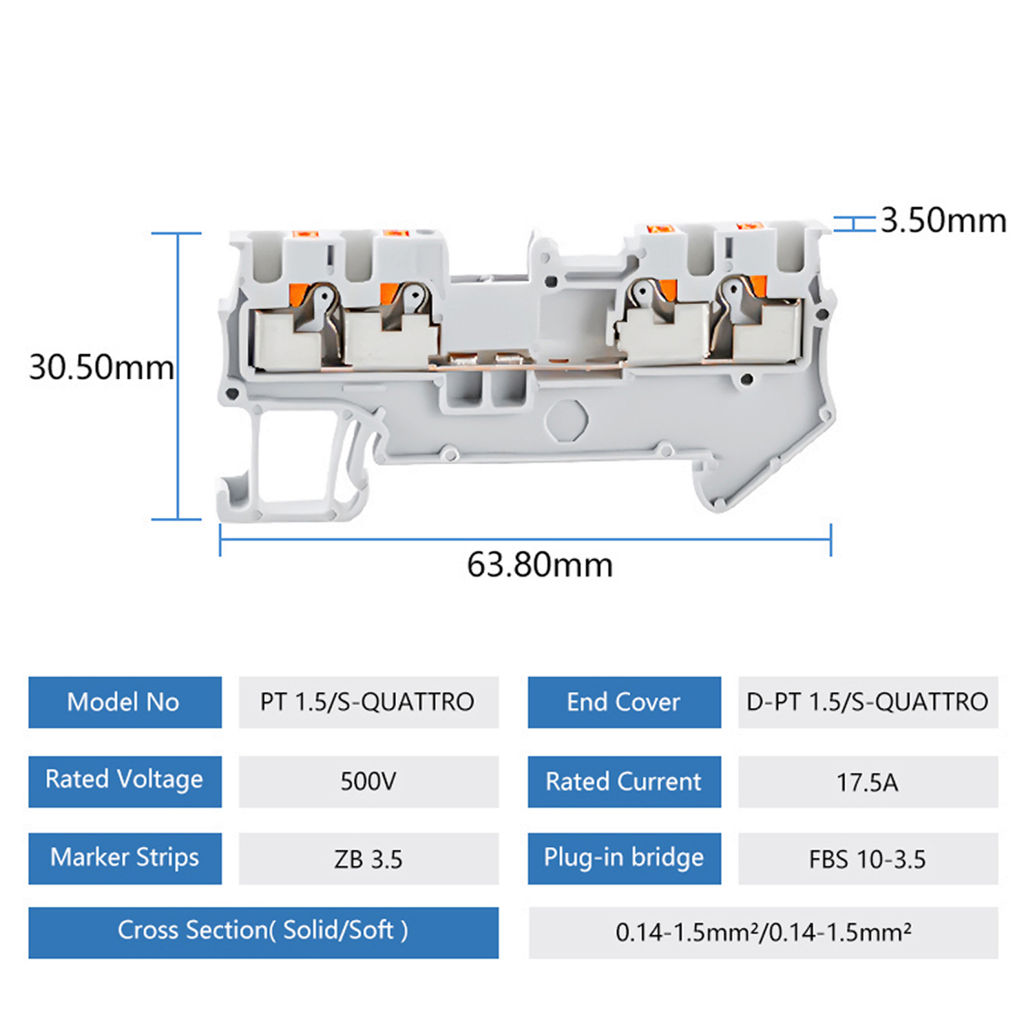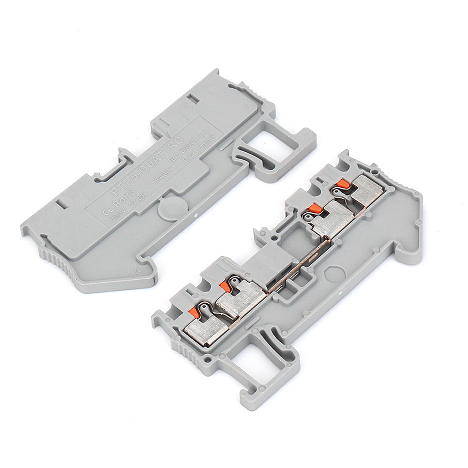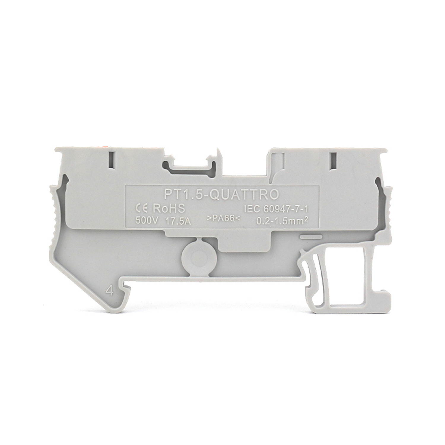 Прохідна клема PT 1.5 QUATTRO (1-рівнева) — призначена для з’єднання та розподілу електричних провідників перерізом до 1,5 мм². Має чотири незалежні точки підключення в одному корпусі, що забезпечує максимальну щільність монтажу та економію місця в електрощиті. Гарантує надійний контакт, зручне підключення та швидке встановлення на DIN-рейку. Підходить для промислових і побутових електромонтажних систем.