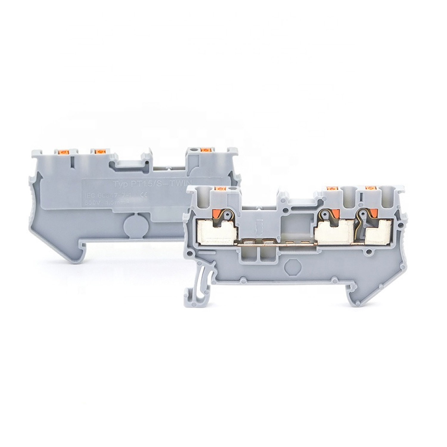 Прохідна клема PT 1.5 TWIN (1-рівнева) — призначена для з’єднання та розподілу електричних провідників перерізом до 1,5 мм². Оснащена двома незалежними точками підключення в одному корпусі, що дозволяє ефективно економити простір у електрощиті. Забезпечує надійний контакт і швидкий монтаж на DIN-рейку, підходить для промислових та побутових електромонтажних робіт.