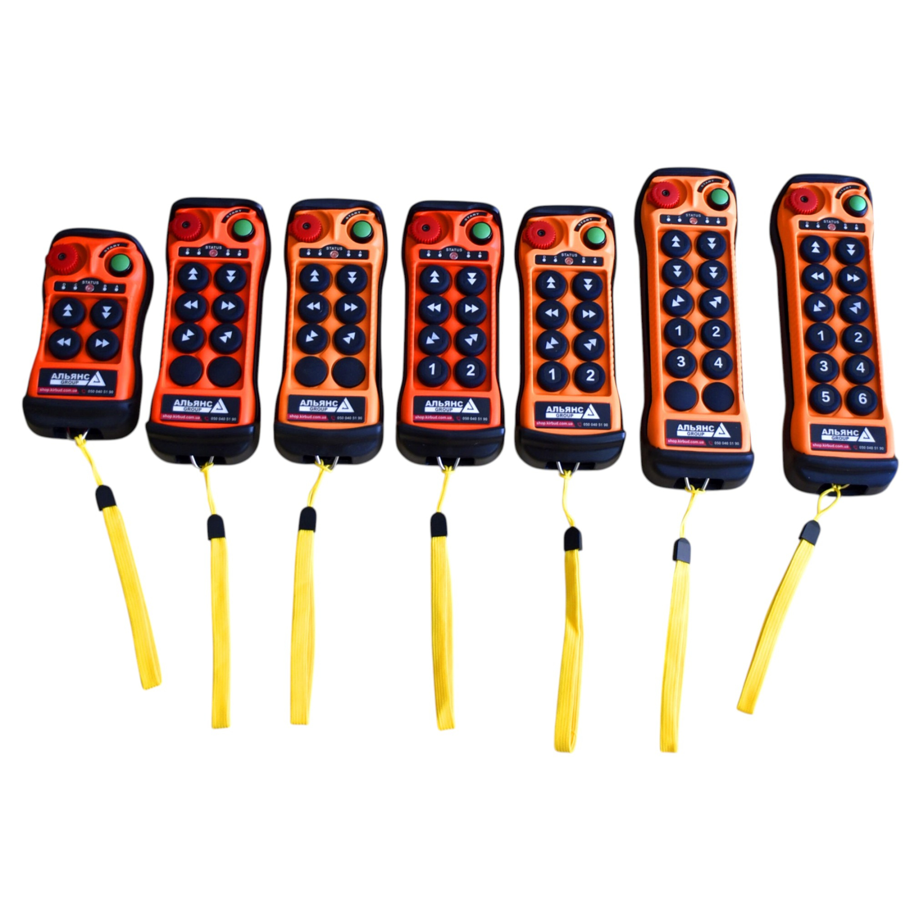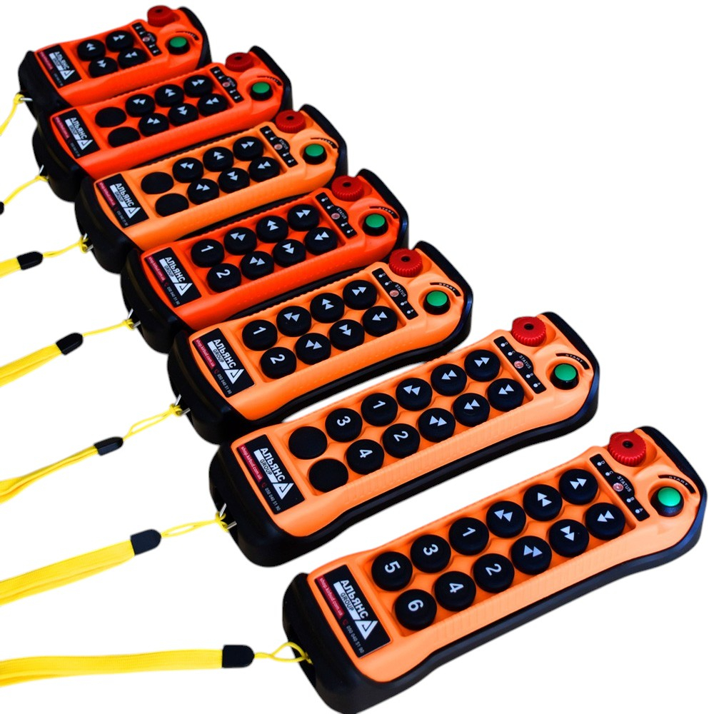 Найвища якість та надійність серед виробників! Безпечне радіокерування краном, тельфером, кран балкою. Професійний радіопульт дистанційного керування, кнопковий пост дистанційного керування, кнопковий радіопульт.Призначений для дистанційного керування краном, кран балкою, тельфером, навантажувачем, маніпулятором, будь-яким верстатом, обладнанням або механізмом.Простий у підключенні, дуже надійне та якісне виконання, клас захисту IP65. Протиударний пульт, який не боїться води та пилу.Професійний захист команд по радіоканалу методом каскадного шифрування за допомогою новітнього мікропроцесора, унікальні коди для кожного пристрою, можливість абсолютно безпечної роботи необмеженої кількості пристроїв з пультами в одному місці.У комплекті змінні та запасні елементи кнопок, захисний чохол та протиударний бампер.Радіус дії 120 метрів.Пропонуємо пульти на 4, 6, 8, 10, 12 кнопок одинарної або подвійної дії - натискання (наприклад, для прискорення або гальмування крана, лебідки або візка). Живлення пульта від двох батарей АА (можливе використання акумуляторів). Час безперервної роботи від акумуляторів/батарейок не менше 100 годин.Індивідуальне програмування. Необмежений набір функцій, ми запрограмуємо кожну кнопку вашого пульта під конкретні завдання - імпульс, тригер, тривалу дію і т.п. Можливість подивитися та випробувати пульт у роботі.Робоча частота: 433-480 МГцРобоча напруга приймача: 110-460V AC, 12-24V AC/DCСтрум комутації керуючого ланцюга 10А - 380VКлас захисту IP65Робоча температура -35°C - +75°C