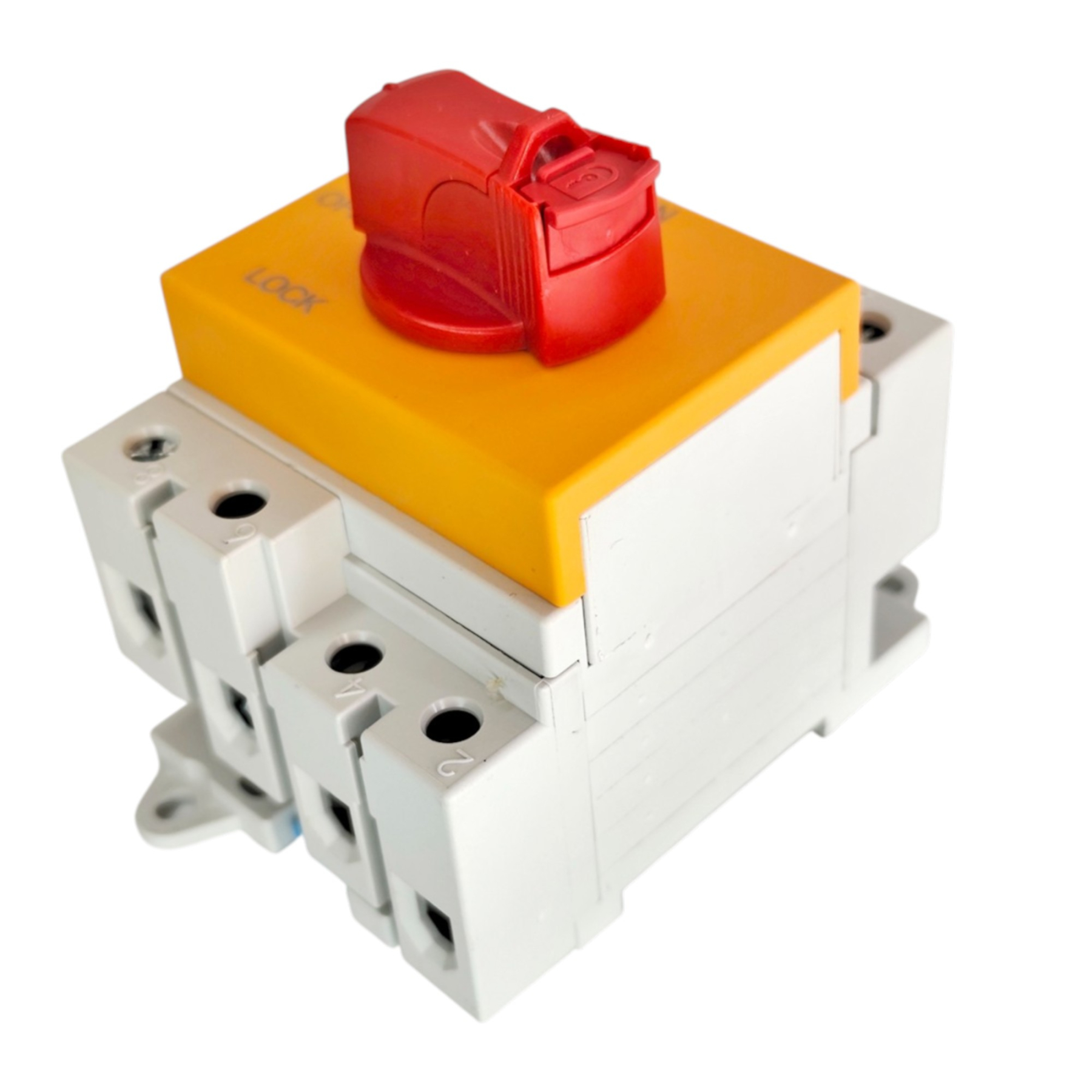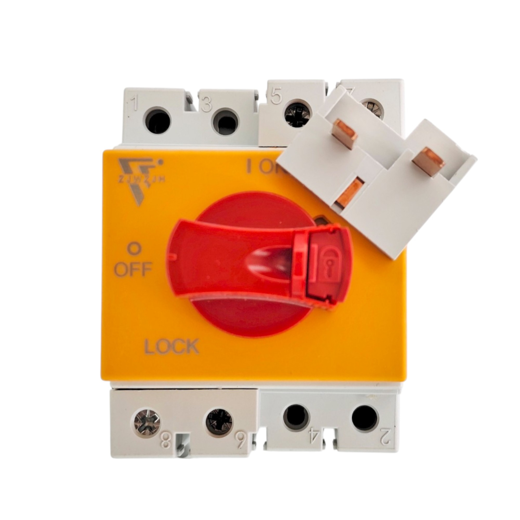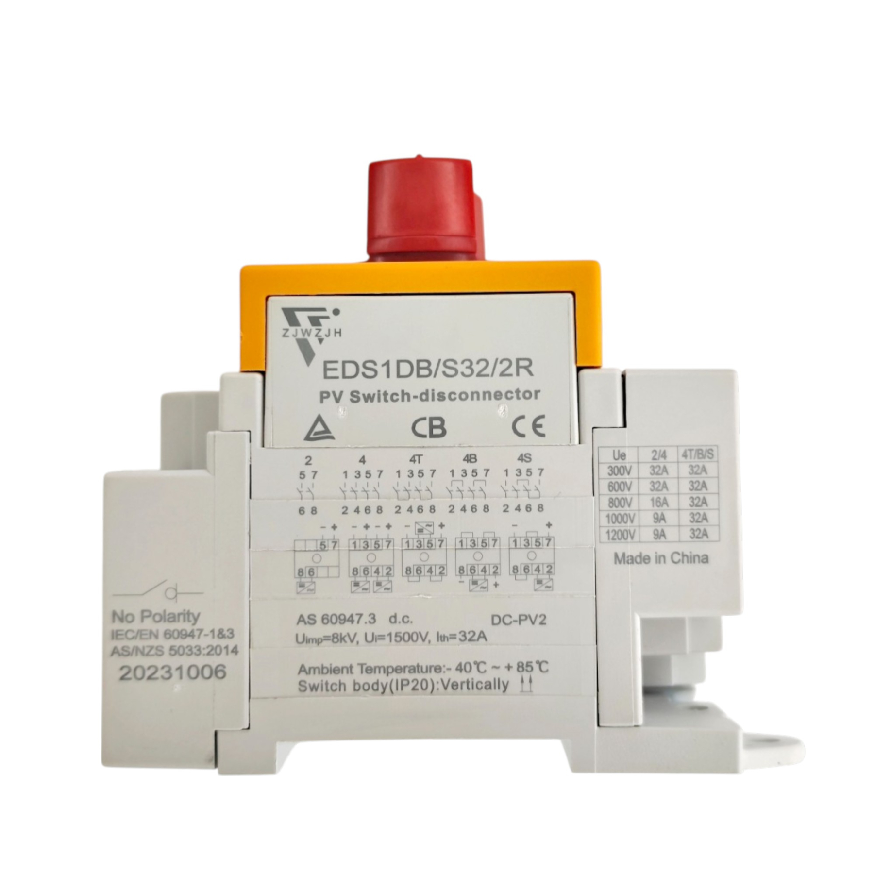 2-полюсний фотоелектричний сонячний перемикач постійного струму 1000 В 32 А на Din-рейку для сонячних панелей з поворотною ручкою. Роз'єднувачі постійного струму були спеціально розроблені для перемикання постійного струму (DC) при напрузі до 1000 В. Роз'єднувач постійного струму - це електричний запобіжний пристрій, який вручну відключається від модулів сонячної фотоелектричної системи. У фотоелектричних системах роз'єднувачі постійного струму використовуються для ручного відключення сонячних панелей для технічного обслуговування, встановлення або ремонту. У більшості сонячних фотоелектричних установок два роз'єднувачі постійного струму підключені до одного ланцюга. Зазвичай один перемикач розміщується поблизу фотоелектричного масиву, а інший - близько до кінця постійного струму інвертора. Це робиться для того, щоб забезпечити можливість відключення на рівні землі та даху. Роз'єднувачі постійного струму можуть бути в поляризованій або неполяризованій конфігурації.