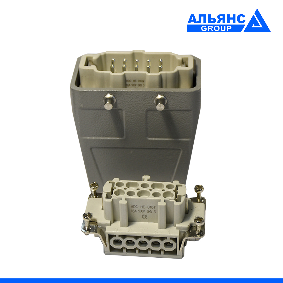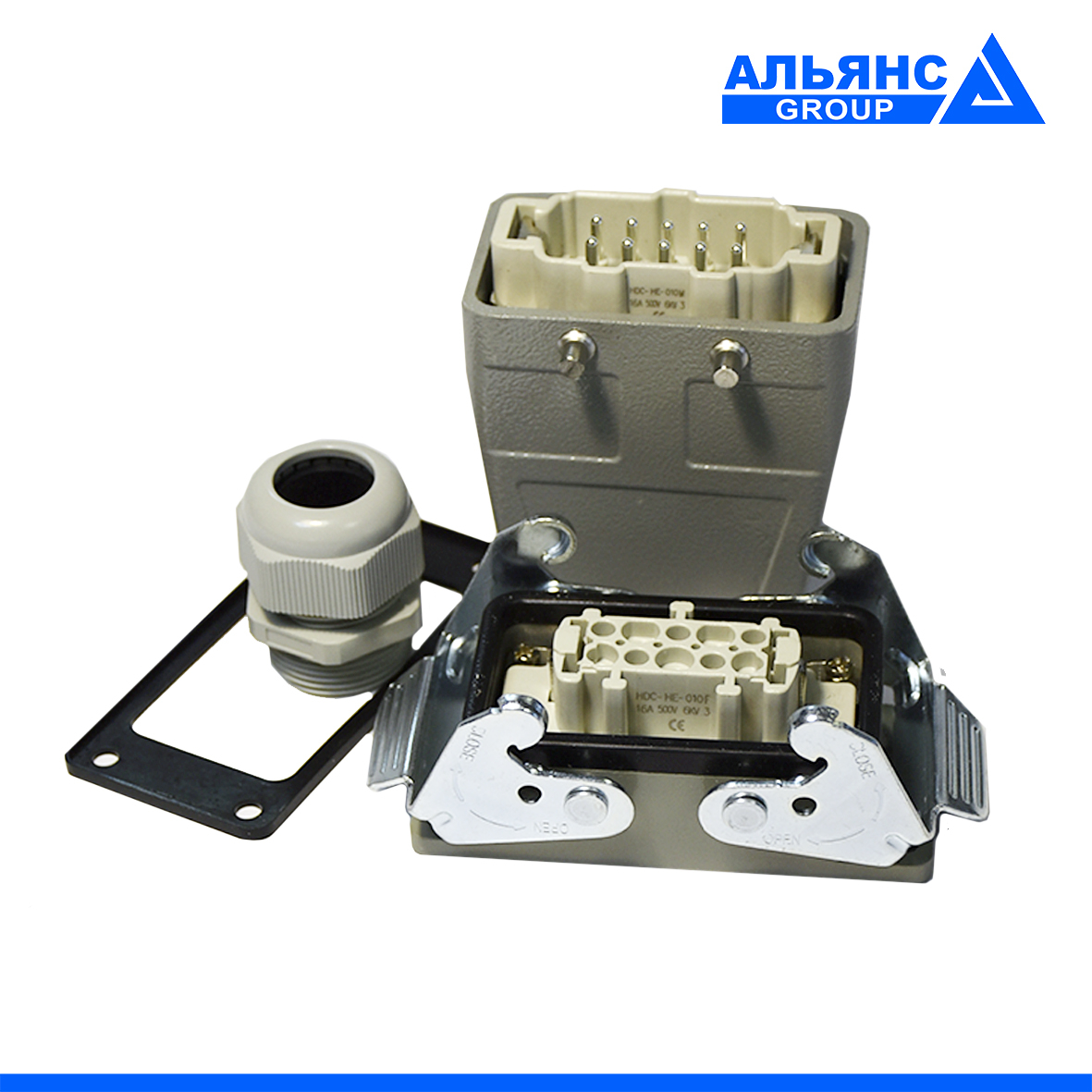 Роз'єм 10 контактів, 16А/500В Комплект: мама+папа з сальником PG29 Тип HE