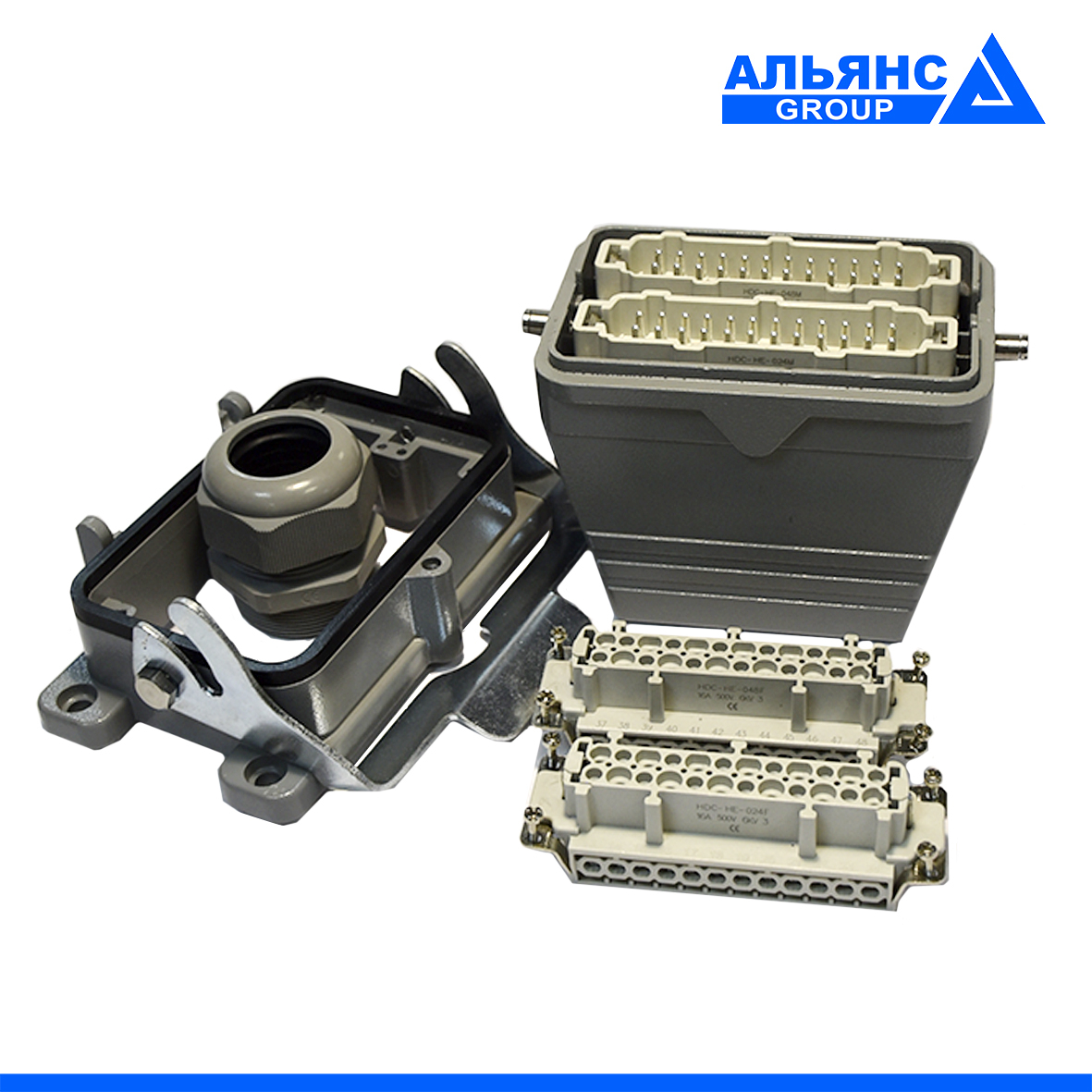 Роз'єм 48 контактів, 16А/500В Комплект: мама+папа з сальником PG29 Тип HE