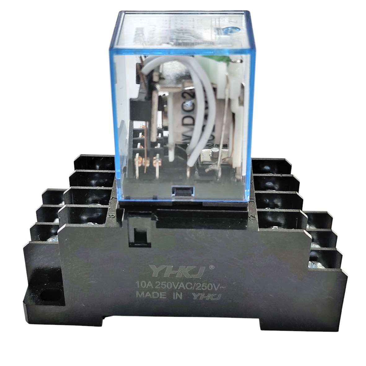 Реле коммутации MY4NJ (HH54P) предназначено для коммутации силовых цепей исполнительных механизмов, преимущественно нагревательных элементов (ТЭН), осветительных приборов и маломощных электродвигателей и других устройств с рабочим напряжением до 240 В переменного и постоянного тока и может управляться сигналами 12V DC/24. Реле имеет 4 независимые группы контактов NO/NC типа. Реле продается вместе с монтажной контактной колодкой, которая позволяет устанавливать его как на DIN рейку, так и на любую плоскую поверхность с помощью винтов. Принцип действия реле — размыкание/смыкание контактов происходит при подаче в обмотку катушки устройства электротока. Порожденное током электромагнитное поле перемещает якорь реле. Последний механическим способом связан с замыкающими контактами или размыкающими электрочепами контактных групп. Параметры реле: номинальный рабочий ток: 3 А коммутируемое напряжение: 0 - 240 В AC/DC встроенный светодиод – индикатор коммутации количество силовых контактов коммутации: 4 контакта NO/NC руководящее напряжение: 12V DC / 24V DC / 220V AC напряжение изоляции катушка-контакты: 1000 В размер реле: 21.5 х 27.5 х 36 мм размер колодки: 29.5 х 76 х 30.5 мм тип установки: DIN-рейка/на поверхность с помощью винтов