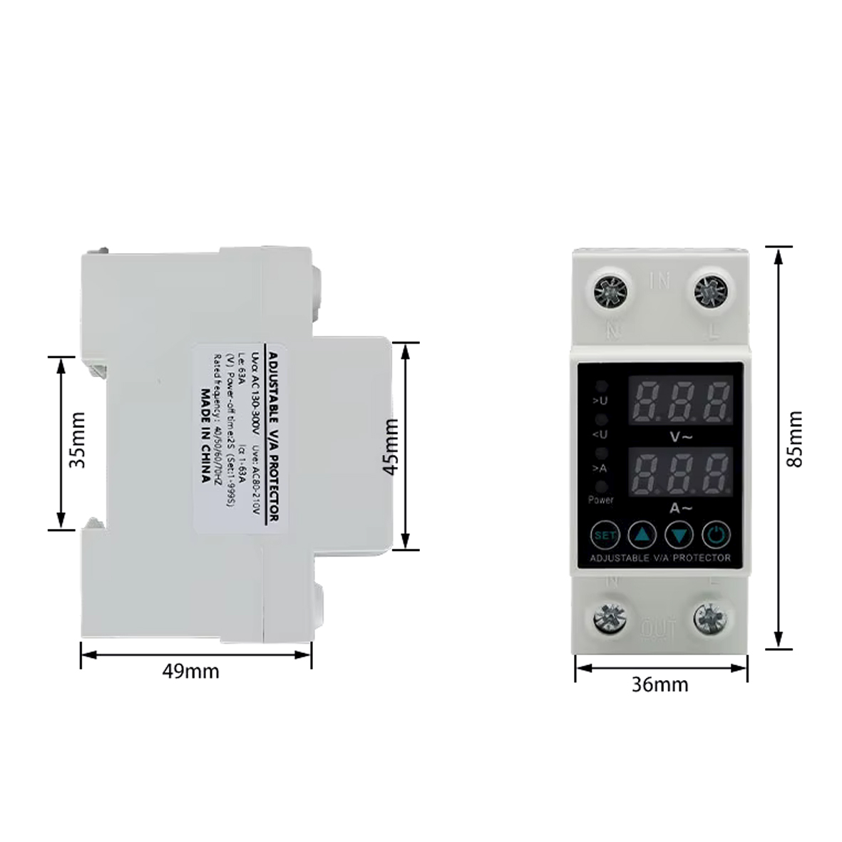 Реле напруги 1фаза 63А електроживлення використовується для повного контролю параметрів електросистеми по вхідній напрузі, струму(току) і частоті. Може використовуватись як для побутових, так і для промислових споживачів. Пристрій має потужну контактну групу, яка дозволяє без додаткових реле (пускачів/контакторів) відмикати об’єкт електроживлення від мережі в разі відхилення від мінімальної/максимальної вхідної напруги або відхилення від мінімальної/максимальної сили струму. Контролер захисту електроживлення має цифровий дисплей, на якому відображаються поточні значення напруги і сили струму в мережі. Реле має простий інтерфейс, за допомогою якого можна налаштувати значення мінімальної/максимальної вхідної напруги або мінімальної/максимальної сили струму, часу перемикання, режиму запуску тощо. Параметри реле напруги 1фаза 63А: комутований робочий струм: 1 фаза 63А комутована напруга: 1 фаза 140 - 400В, AC частота електричної мережі: 50/60Гц регульовані параметри нижнього порогу напруги: 140-200В регульовані параметри верхнього порогу напруги: 240-300В регульовані параметри сили струму: 0-63А час перемикання: max 0.5сек програмований час перезапуску при відновленні параметрів електромережі: 1-300сек тип встановлення: DIN-рейка Маємо також в наявності інші реле напруги