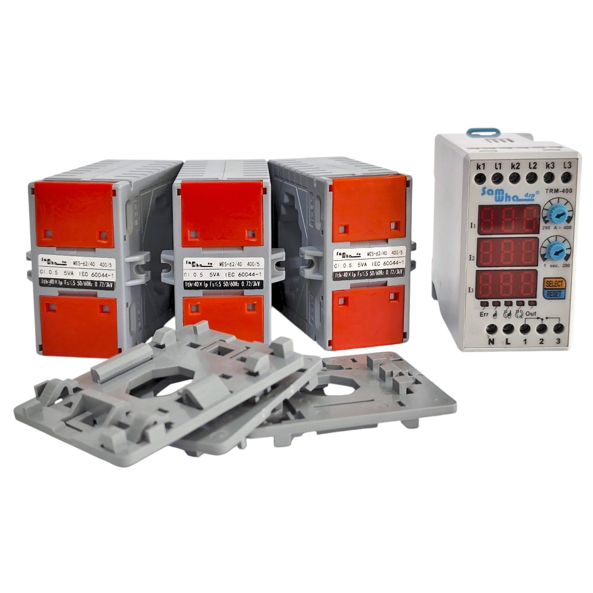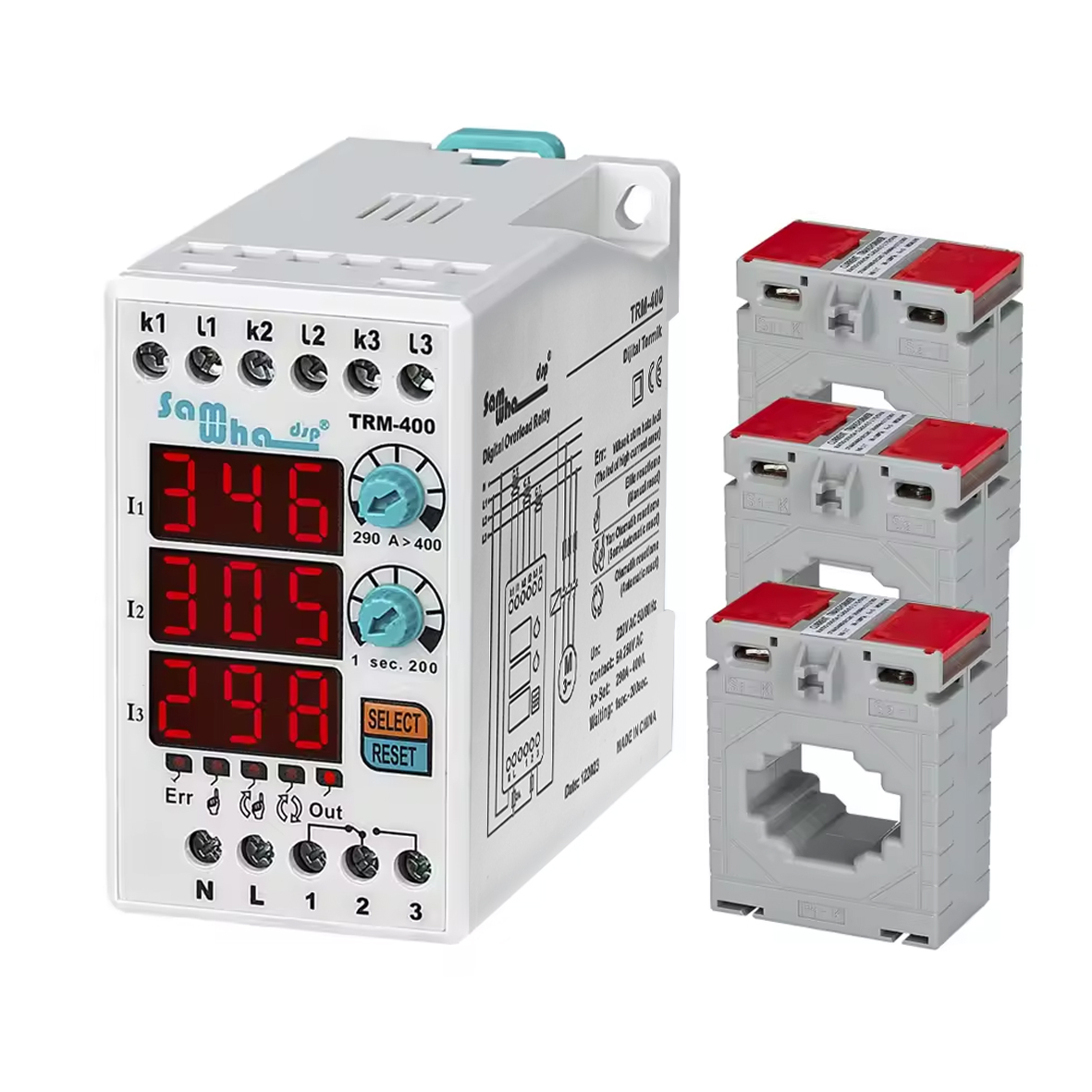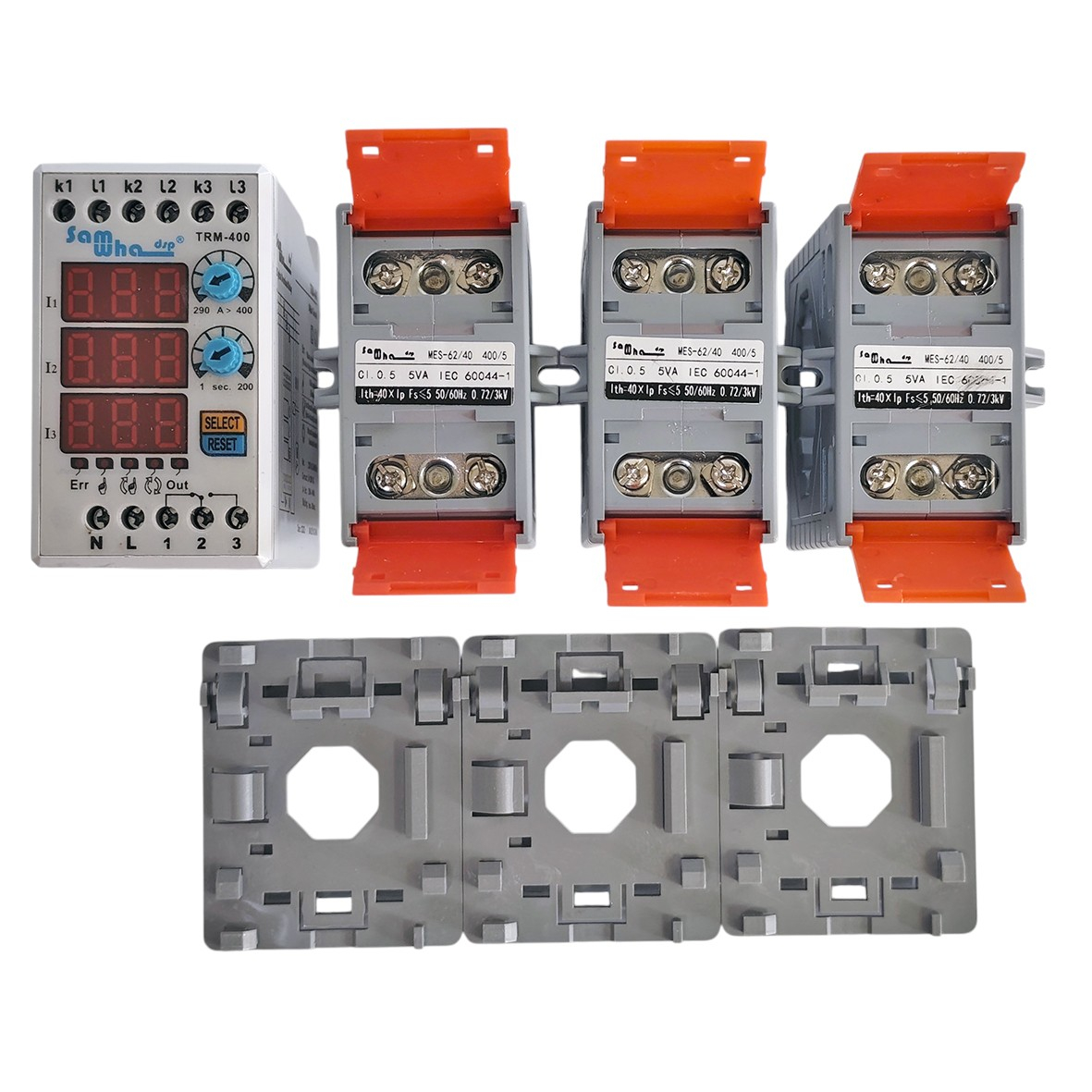 Реле захисту струму використовується для контролю параметрів електросистеми по струму. Реле призначено для запобігання та керування навантаженнями від пошкодження через високий струм, захищає від 50% асиметрії фіксованого струму, має регульований час затримки помилок. Режим роботи реле - автоматичний, напівавтоматичний, ручний, в комплект поставки входять трансформатори струму. На відміну від звичайних запобіжників або автоматичних вимикачів електронне реле захисту струму дозволяє точно задати числові параметри спрацювання по перевищенню струму (задається максимальний струм і час затримки зворотного включення), має числові індикатори поточної сили струму по кожній фазі, дозволяє після спрацювання автоматично повернутися до "робочого" положення, а також задати тимчасові параметри роботи системи. Реле струму має невеликі габарити порівняно з автоматами і легко встановлюється в будь яку систему управління. В реле реалізовано 3 програми повернення в "робочий" режим - РУЧНИЙ, НАПІВАВТОМАТ, АВТОМАТ. Параметри реле: Робоча напруга 150VAC - 260VAC Робоча частота 50/60 Гц Робоча потужність <6ВА Робоча температура -20°C ..... +55°C Цифровий дисплей 3х3-значний дисплей + 5 індикаторів-світлодіодів Діапазон налаштування струму перевантаження : ТРМ-25 0,1А – 25А ТРМ-50 15А - 50А ТРМ-100 40А - 1 ООА ТРМ-200 90А - 200А ТРМ-300 190А - 300А ТРМ-400 290А - 400А Захист по асиметрії фаз 50% фіксований, крім TRM-400 Діапазон регулювання часу очікування (т) : ТРМ-25/50/100 0,1сек. - 20сек. ТРМ-200/300/400 1,0сек. - 200сек. Тип підключення Клемне підключення Контакти 5A/ 250 В змінного струму (резистивне навантаження) Діаметр кабелю 2,5 мм.кв. Вага приблизно 250гр. Розміри цифрового блоку 44мм/75мм/84,5мм (ширина/висота/глибина)