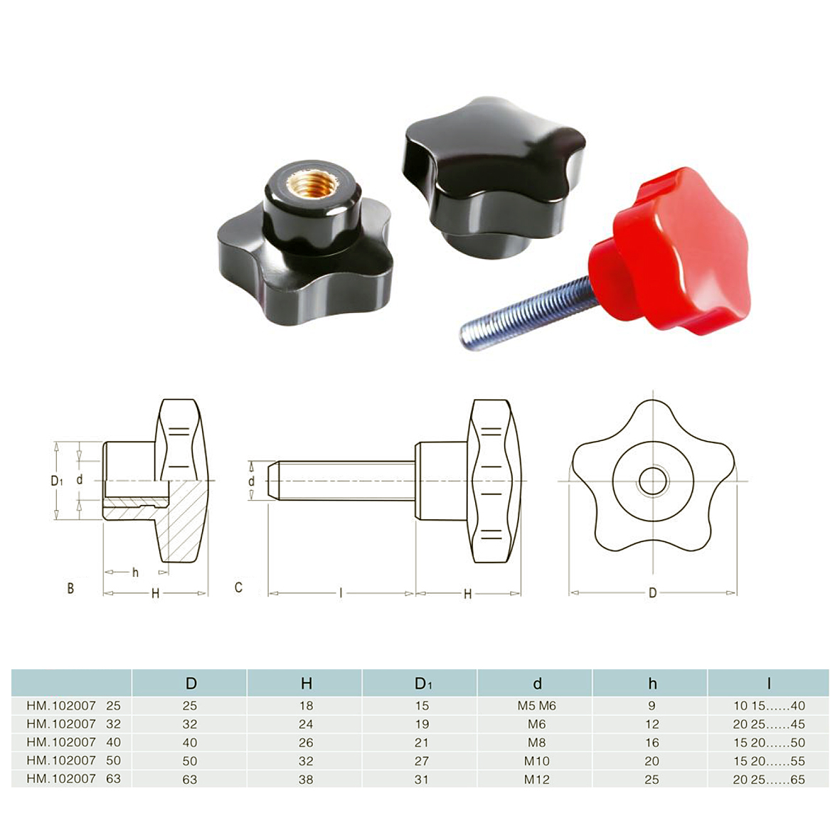 | Ручка фіксатор бакелітова внутрішня різьба М10 діам. 50мм | 50 | 32 | 27 | M10 | 20 | 15 20...55 |