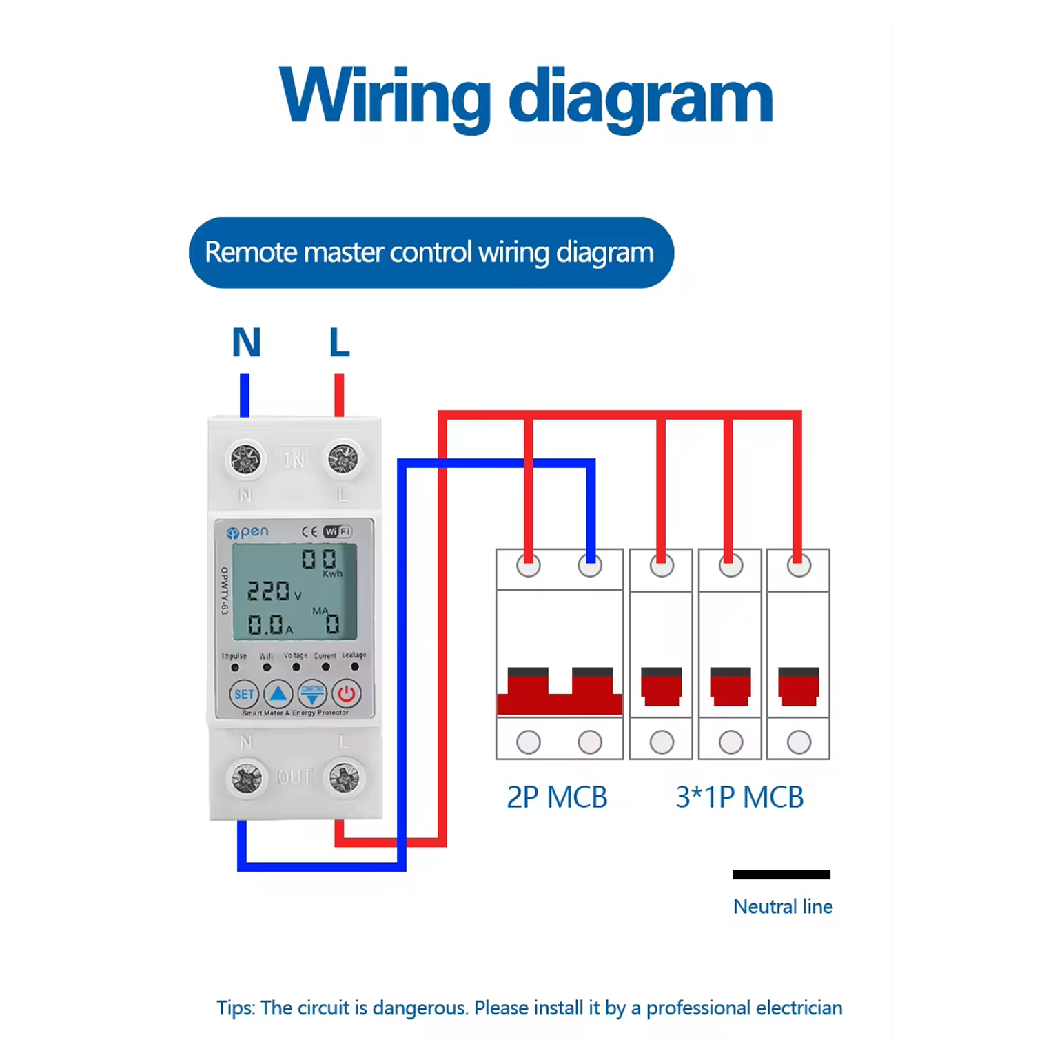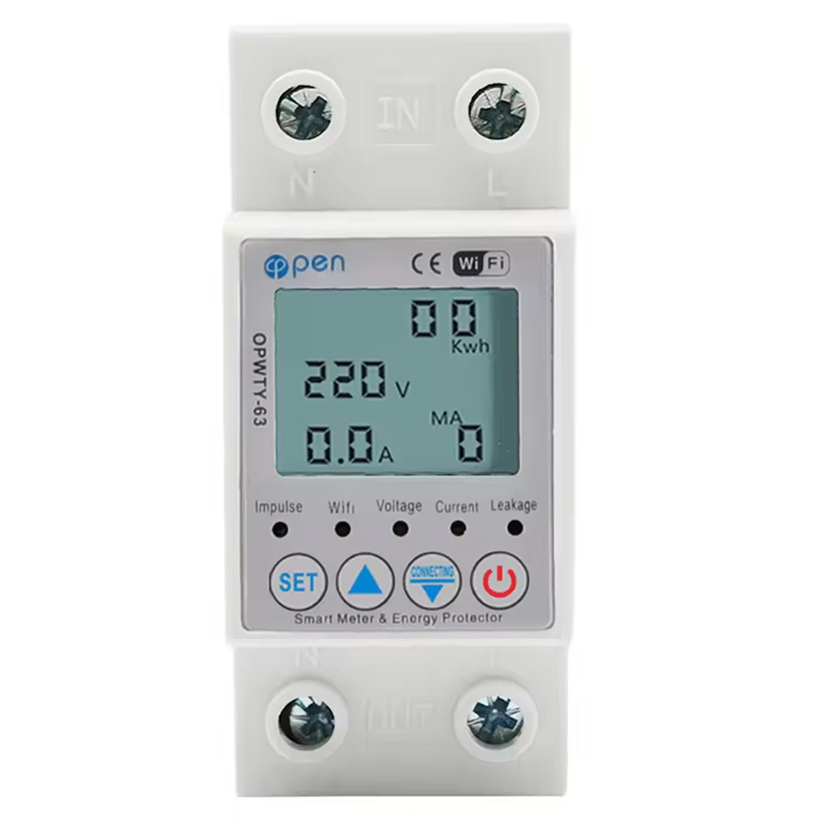 Розумний лічильник електроенергії використовується для повного контролю параметрів і захисту електросистеми по вхідній напрузі (В), струму (А), витратам електроенергії (КВт*год), струму витоку (УЗО mA). Може використовуватись як для побутових, так і для промислових споживачів з одно фазною електромережею. За допомогою вбудованого модуля WiFi легко приєднується до бездротової мережі. Передає всі параметри до хмари на сервері. Ці параметри зручно контролюються в будь-який момент з мобільного додатку SmartLife або TuyaSmart. Додаток дозволяє віддалено змінювати всі параметри налаштувань лічильника. Переглядати поточні параметри лічильника (напругу, струм, загальні витрати тощо), витрати електроенергії за довільний період в розрізі годин / місяців / років. Є можливість програмування часу увімкнення/вимкнення напруги в мережу. А також вимкнення напруги в мережі при досягненні певного рівня витрат електроенергії. Пристрій має потужну одно фазну контактну групу. Вона дозволяє без додаткових реле (пускачів/контакторів) відмикати об’єкт електроживлення від мережі в разі відхилення від мінімальної/максимальної вхідної напруги, відхилення від мінімальної/максимальної сили струму, перевищення струму витоку (УЗО - mA). WiFi SMART лічильник має цифровий дисплей, на якому відображаються поточні значення напруги, сили струму, загальних витрат електроенергії, та струму витоку (УЗО - mA) в мережі.