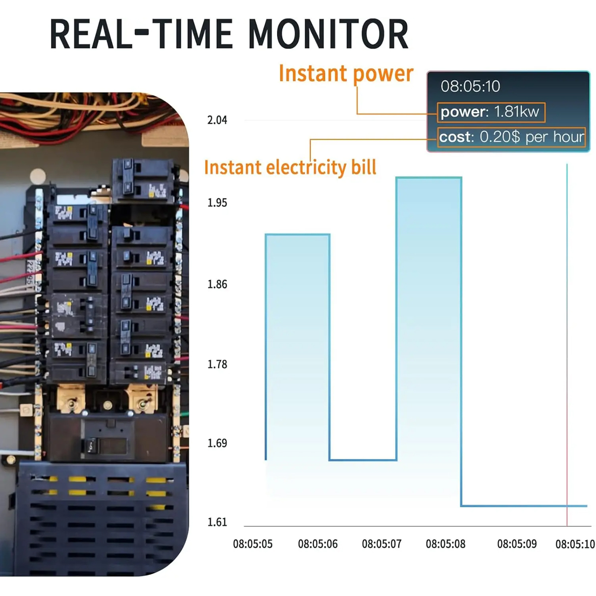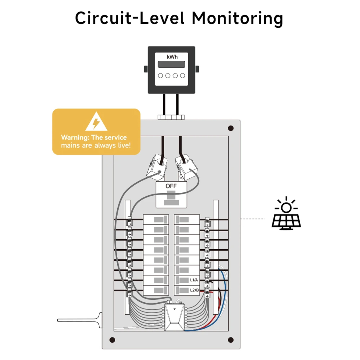 - Віддалений моніторинг енергії у всьому приміщенні та до 16 окремих ланцюгів з 50A Sub CT, наприклад, сонячної енергії, освітлення, розеток.