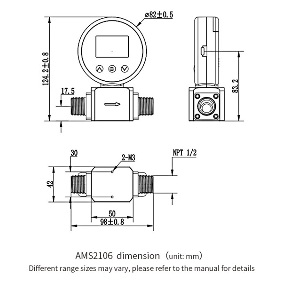 Лічильник газу масс-термальний AMS2106-DN15 для моніторингу витрати повітря, азоту, кисню, аргону. Серія витратомірів газу з поворотним цифровим дисплеєм AMS2106 заснована на тепловому принципі та обчислює масову витрату вимірюваного газу шляхом вимірювання зміни опору. Датчик використовує найпрогресивнішу мікросхему вимірювання масового потоку MEMS, яка має чудову продуктивність, стабільність і надійність, а також має такі характеристики, як висока точність, хороша стабільність, стійкість до високих і низьких температур, гарна лінійність і швидка реакція. Лічильник газу масс-термальний AMS2106-DN15 використовується для моніторингу витрати повітря, азоту, кисню, аргону, вуглекислого газу та інших сухих, чистих і неагресивних газів (крім легкозаймистих і вибухонебезпечних газів).