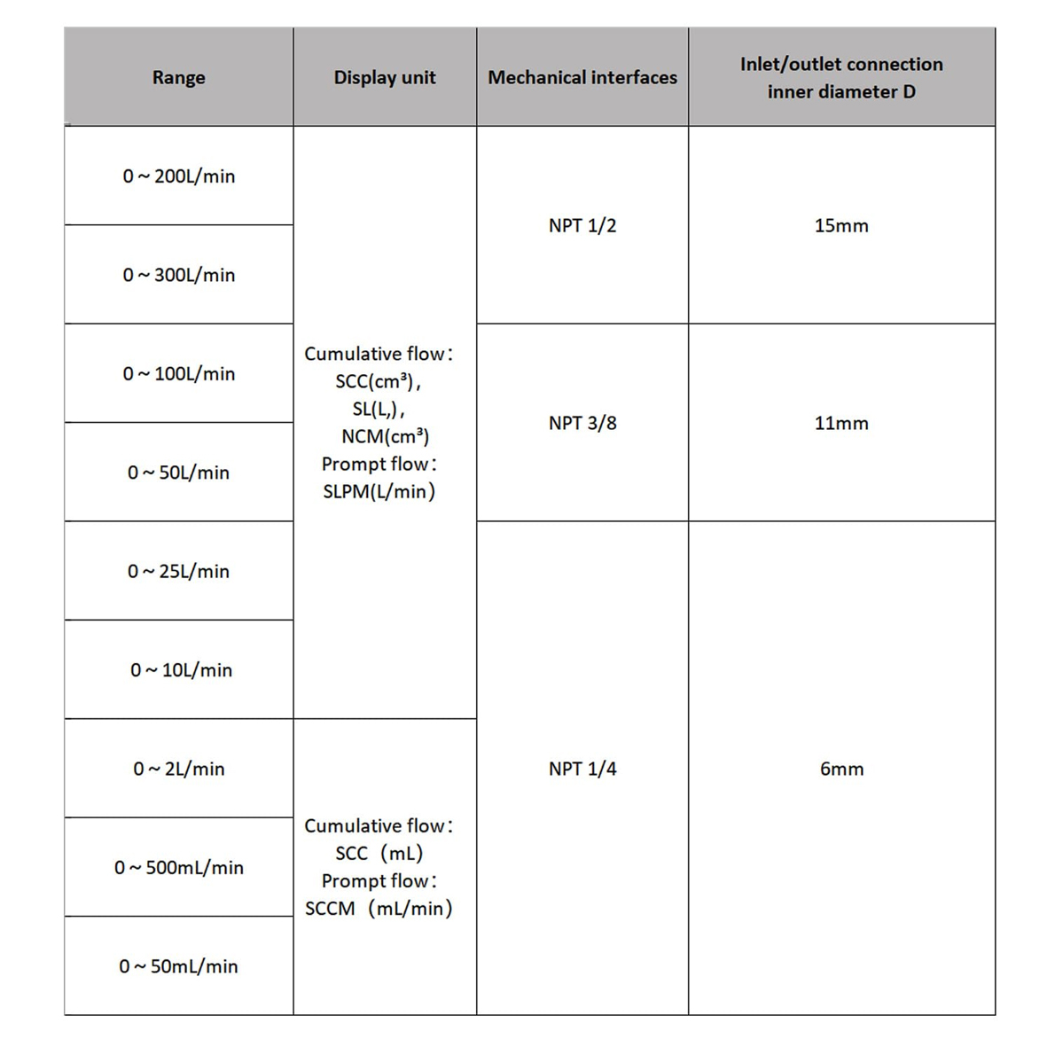 Діапазон вимірювання - 0~200 л/хв (стандарт, максимум 300л/хв ) Точність - ±3% FS Повторюваність - 0,5% FS Час відгуку - ≤ 2 с Джерело живлення - 3 батарейки типу АА або зовнішнє джерело живлення 9~24 В постійного струму (в комплекті) Дисплей - LCD з підсвіткою, поворотний 0-180 градусів Вихідний сигнал комунікації - RS485, Modbus-RTU Відображення одиниць вимірювання - Сукупний потік (л), миттєвий потік (л/хв) Максимальний робочий тиск - 0,8 МПа Втрата тиску - ≤2000Па Стандартний калібрувальний газ - повітря (стандартний стан) Роз’єм живлення і комутації - Type-C, кабель в комплекті Споживана потужність - ≤50mW Роз'єми вхід/вихід різьба - дюймова G1/2 Вага - 280г Корисне PDFВідгуки