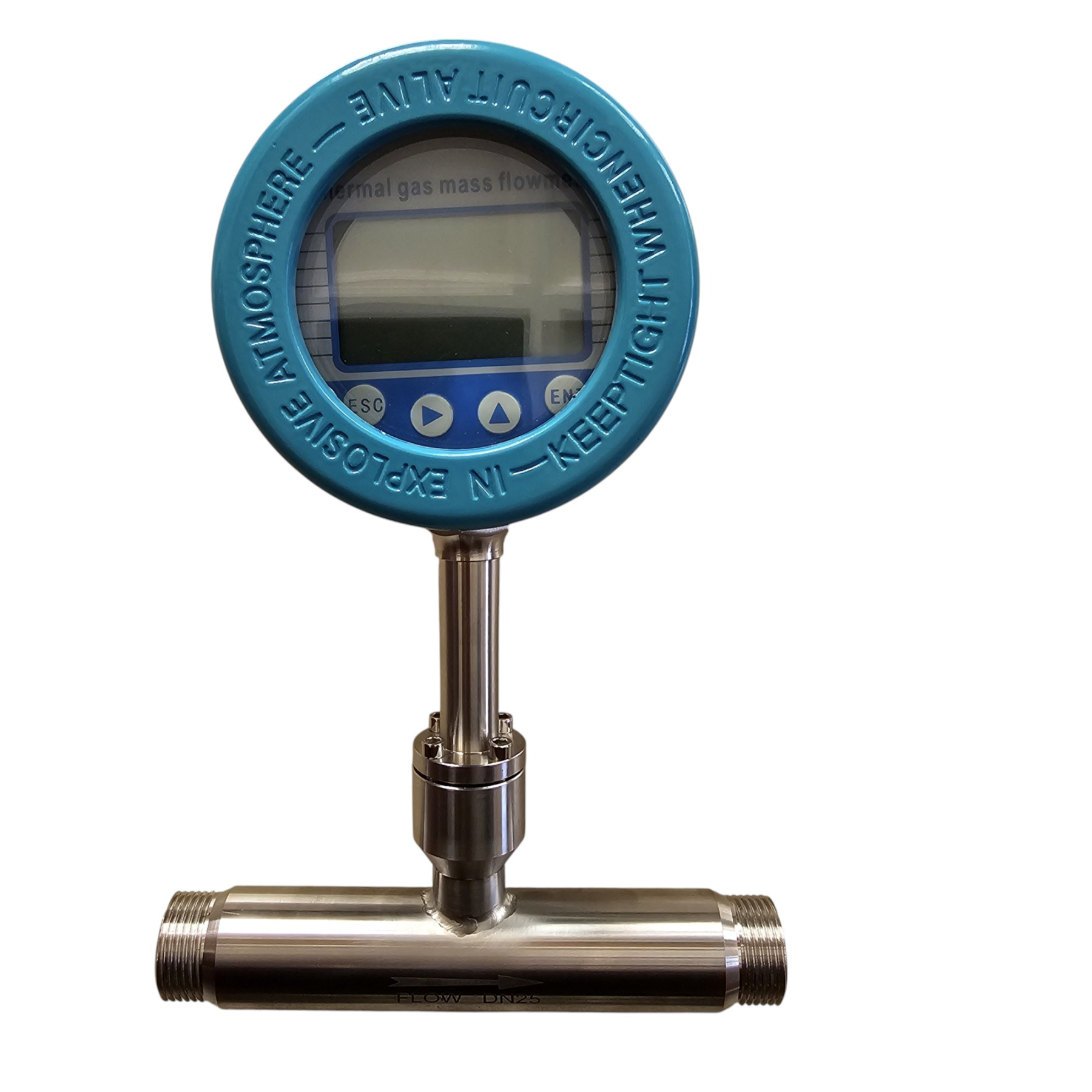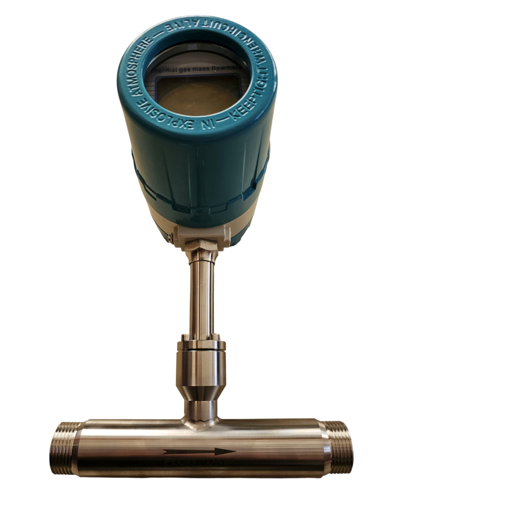 Серія витратомірів газу з цифровим дисплеєм HRLSML заснована на тепловому принципі та обчислює масову витрату вимірюваного газу шляхом вимірювання зміни опору. Датчик використовує найпрогресивнішу мікросхему вимірювання масового потоку MEMS, яка має чудову продуктивність, стабільність і надійність, а також має такі характеристики, як висока точність, хороша стабільність, стійкість до високих і низьких температур, гарна лінійність і швидка реакція. Сфера застосування : Лічильник газу використовується для моніторингу витрати повітря, азоту, кисню, аргону, вуглекислого газу та інших сухих, чистих газів (загалом в лічильнику передбачені коефіцієнти масового розрахунку для 59 газів). Технічні характеристики : Діапазон вимірювання - 1.75-175Nm³/h (повітря), 0.89-89Nm³/h (кисень), 1.75-175Nm³/h (азот), 0.25-25Nm³/h (водень) тощо Матеріал - нержавіюча сталь SS304 Точність - ±1.5% FS Джерело живлення - 24В / 220В Дисплей - LCD з підсвіткою Вихідний сигнал комунікації - цифровий RS485 та аналоговий 4-20mA Відображення одиниць вимірювання - Сукупний потік (л), миттєвий потік (л/хв), швидкість потоку Максимальний робочий тиск - 2.5 МПа Робоча температура газу - -20 ~ 250⁰С Кількість реле - 2 допоміжних реле для незалежних налаштувань Пам’ять - енергонезалежна пам’ять для зберігання історичних даних витрат за обраний діапазон часу Роз'єми вхід/вихід різьба - дюймова G1” Клас захисту - IP68 Вага - 3,7кг.