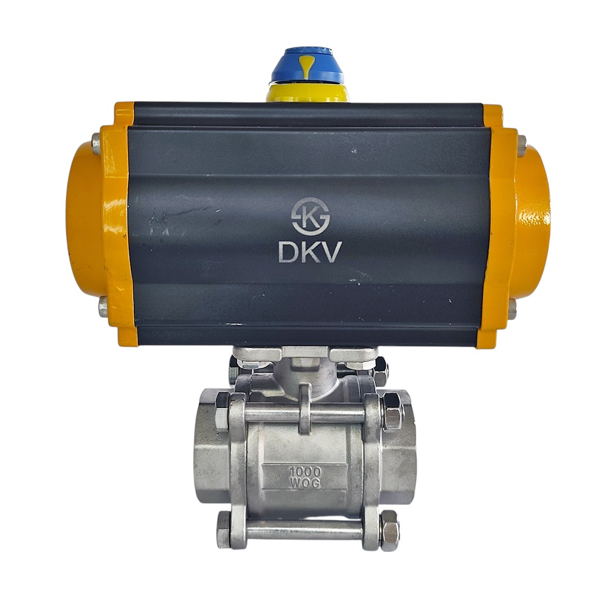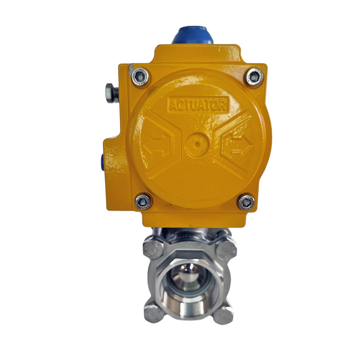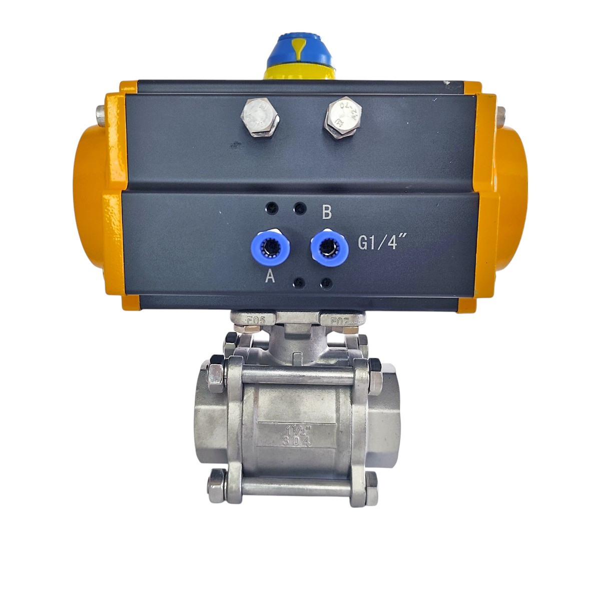 Шаровий кран з пневмоприводом, н/ж SS304, 3сост, пруж.повернення, DN40, внутрішня-внутрішня різьба G1-1/2"F-G1-1/2"F