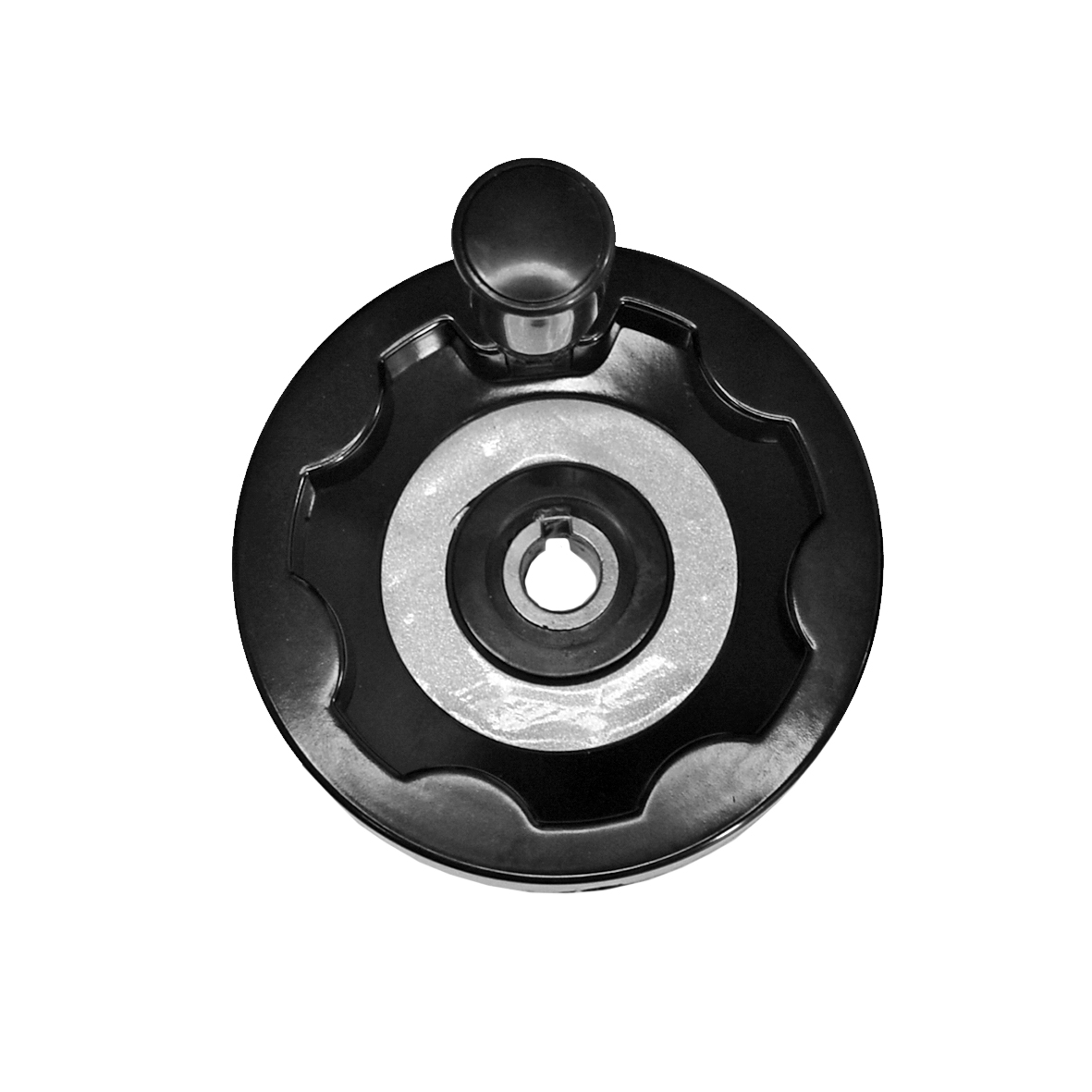 Штурвал-маховик верстатний 100 мм дисковий. Циліндрична ручка обертається на гвинті, яким кріпиться до тіла маховика. Стійкий до олій та мастильних матеріалів, органічних розчинників та інших агресивних середовищ.