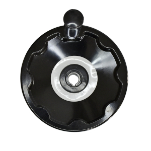 Дисковий маховик зі складною ручкою Верстатний дисковий бакелітовий штурвал зі шпоночним отвором. Циліндрична ручка обертається на гвинті, яким кріпиться до тіла маховика та для зручності складається. Матеріал: тіло — бакеліт, маточина — вуглецева сталь Стійкий до олій та мастильних матеріалів, органічних розчинників та інших агресивних середовищ.