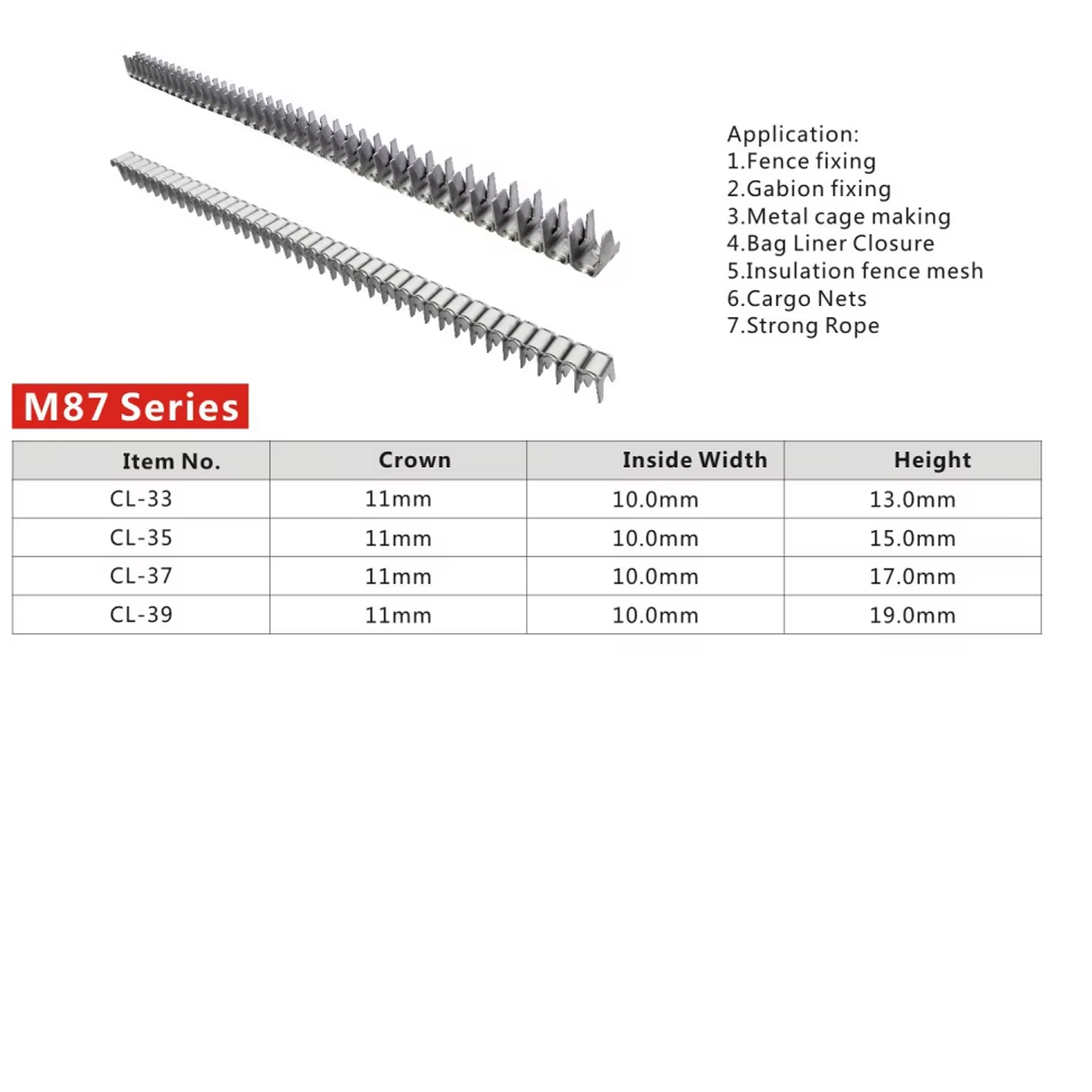 Довжина - 11 мм Висота - 15 мм Внутрішня ширина - 10 мм Товщина - 1,5 мм В одній коробці - 4000 штук, вага - 13,6 кг.