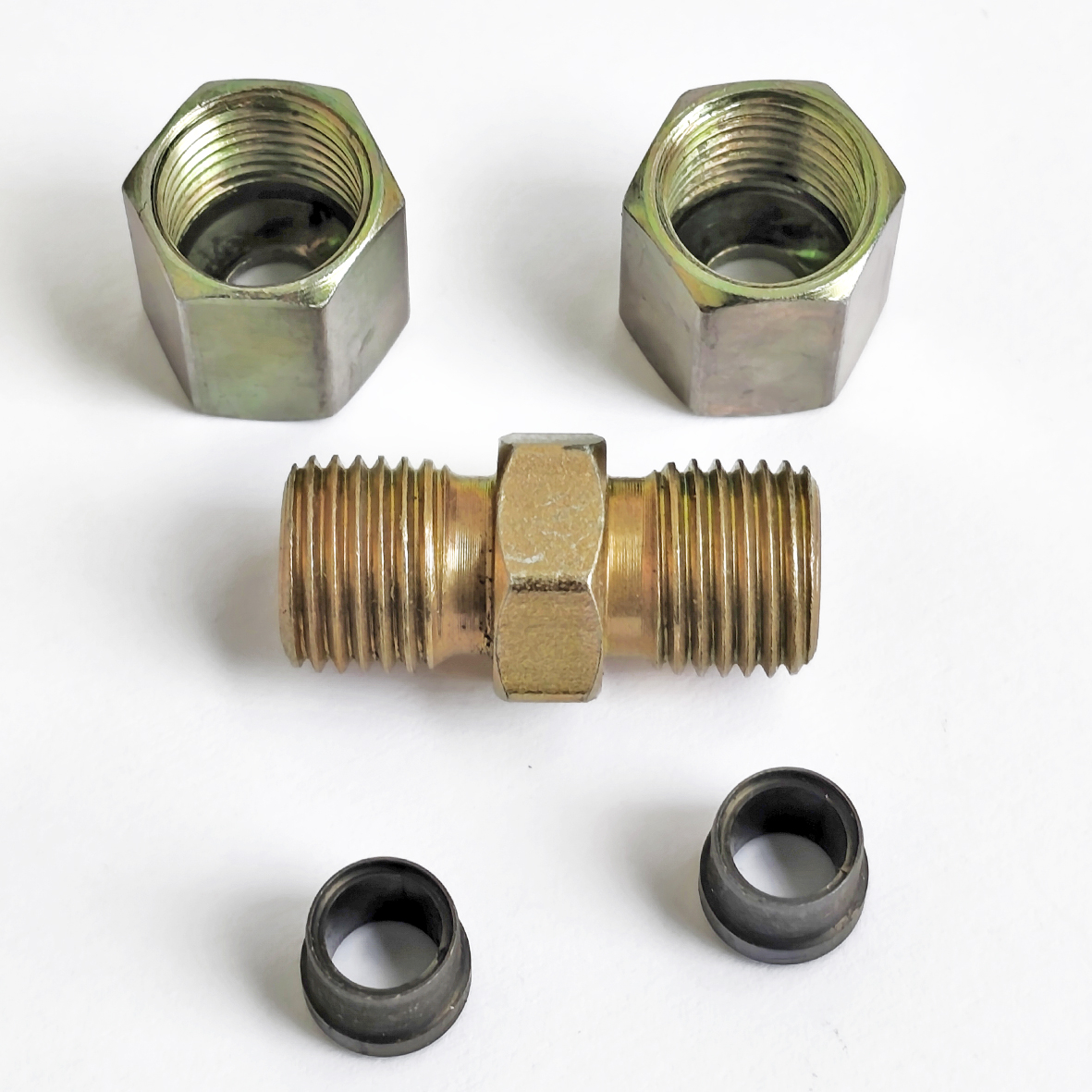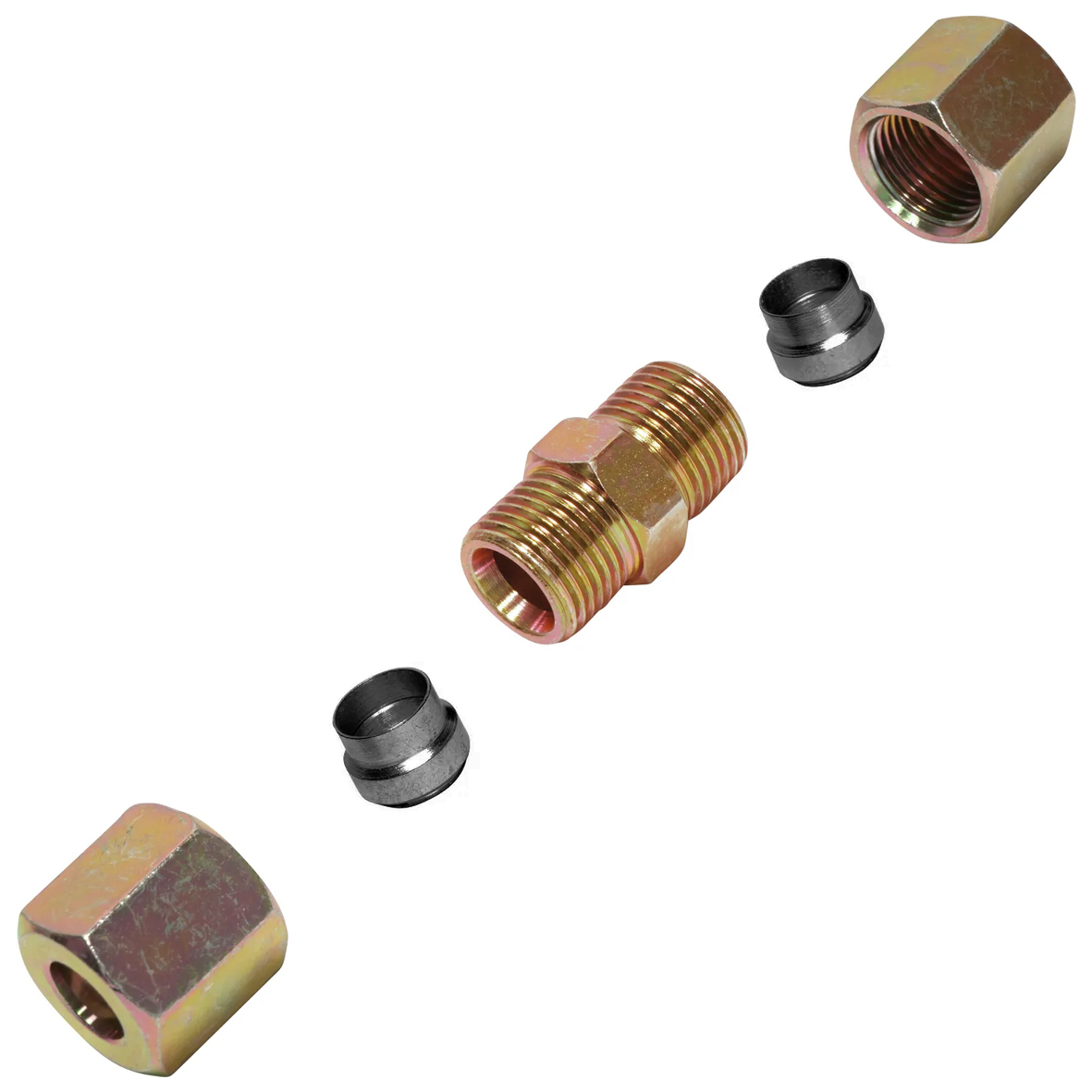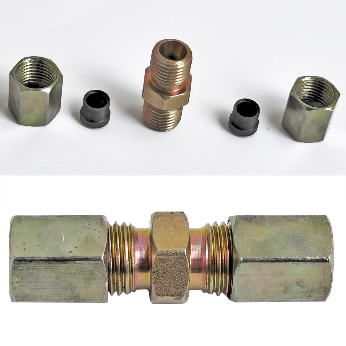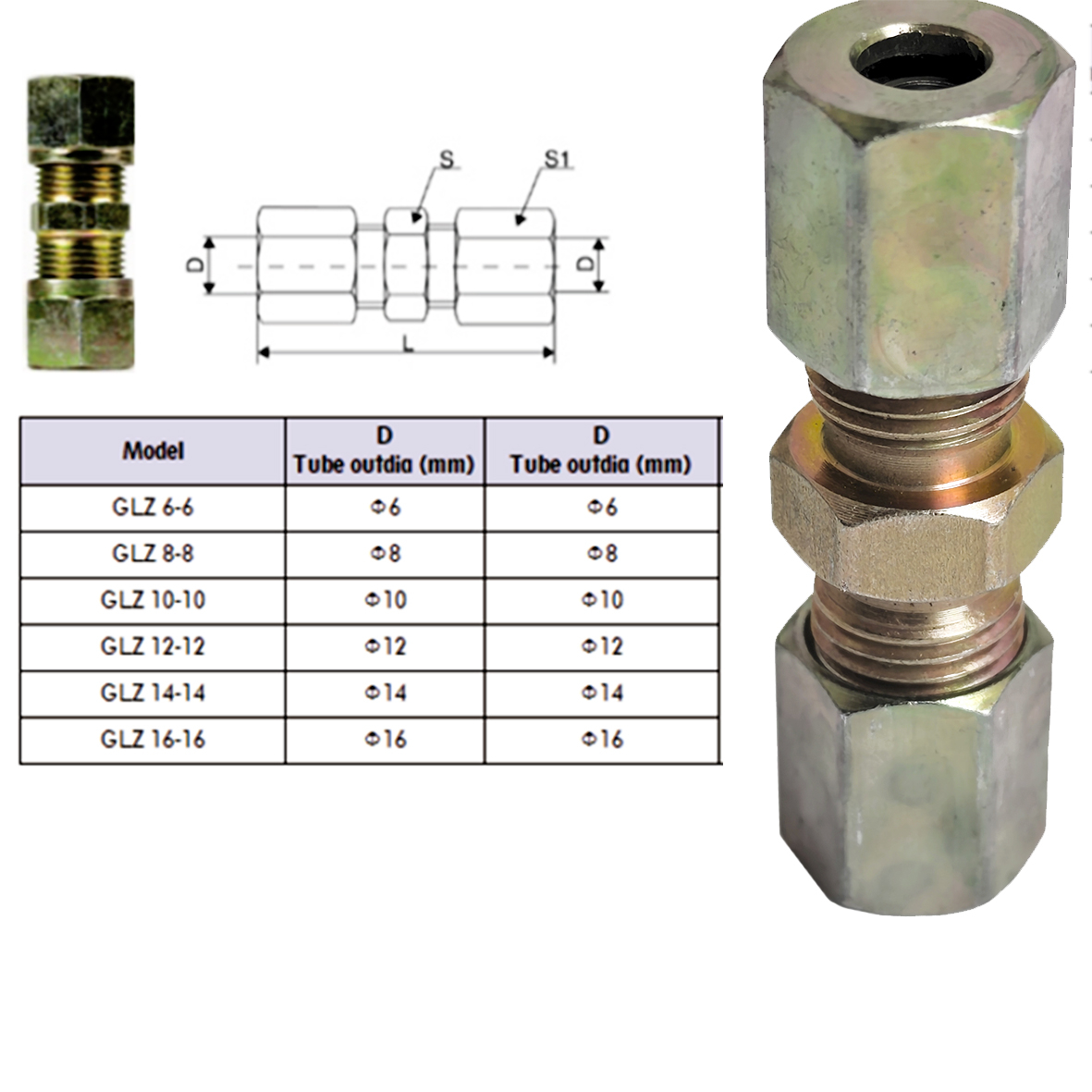 Сталеве з’єднання GLZ 6-6 призначене для надійного з’єднання трубопроводів або шлангів діаметром 6 мм у системах подачі пластичного мастила чи гідравлічних лініях. Виготовлене з міцної вуглецевої сталі з гальванічним покриттям, що забезпечує високу стійкість до корозії та механічних навантажень. Забезпечує герметичне з’єднання без втрат тиску. Основні характеристики: