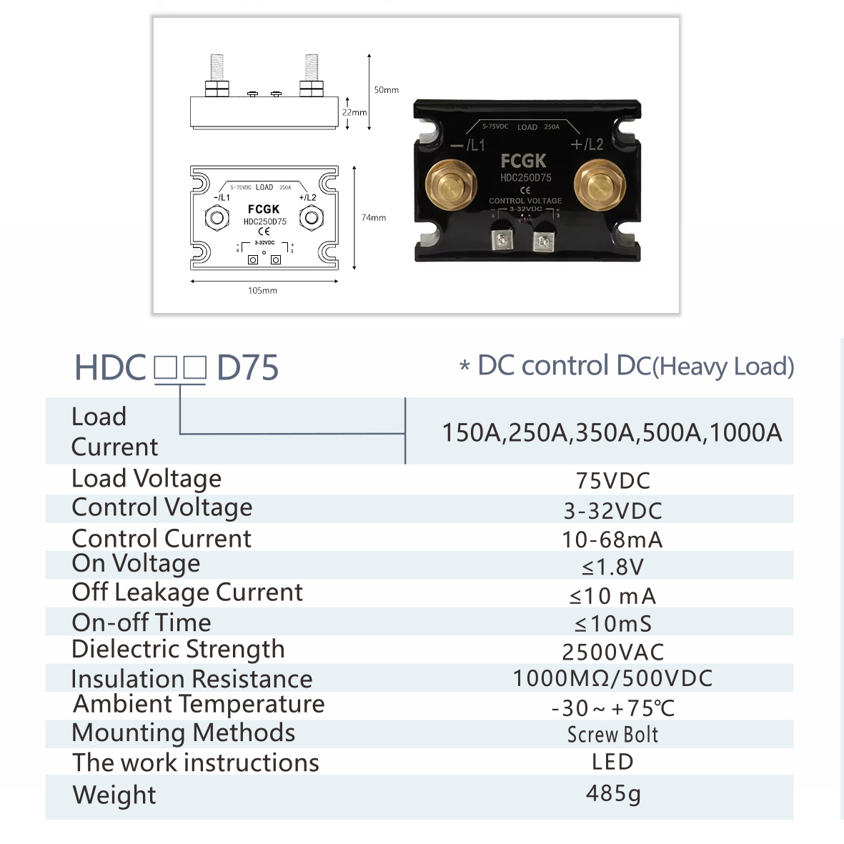 SSR реле 1фаза HDC1000D75, 1000А, DC-DC