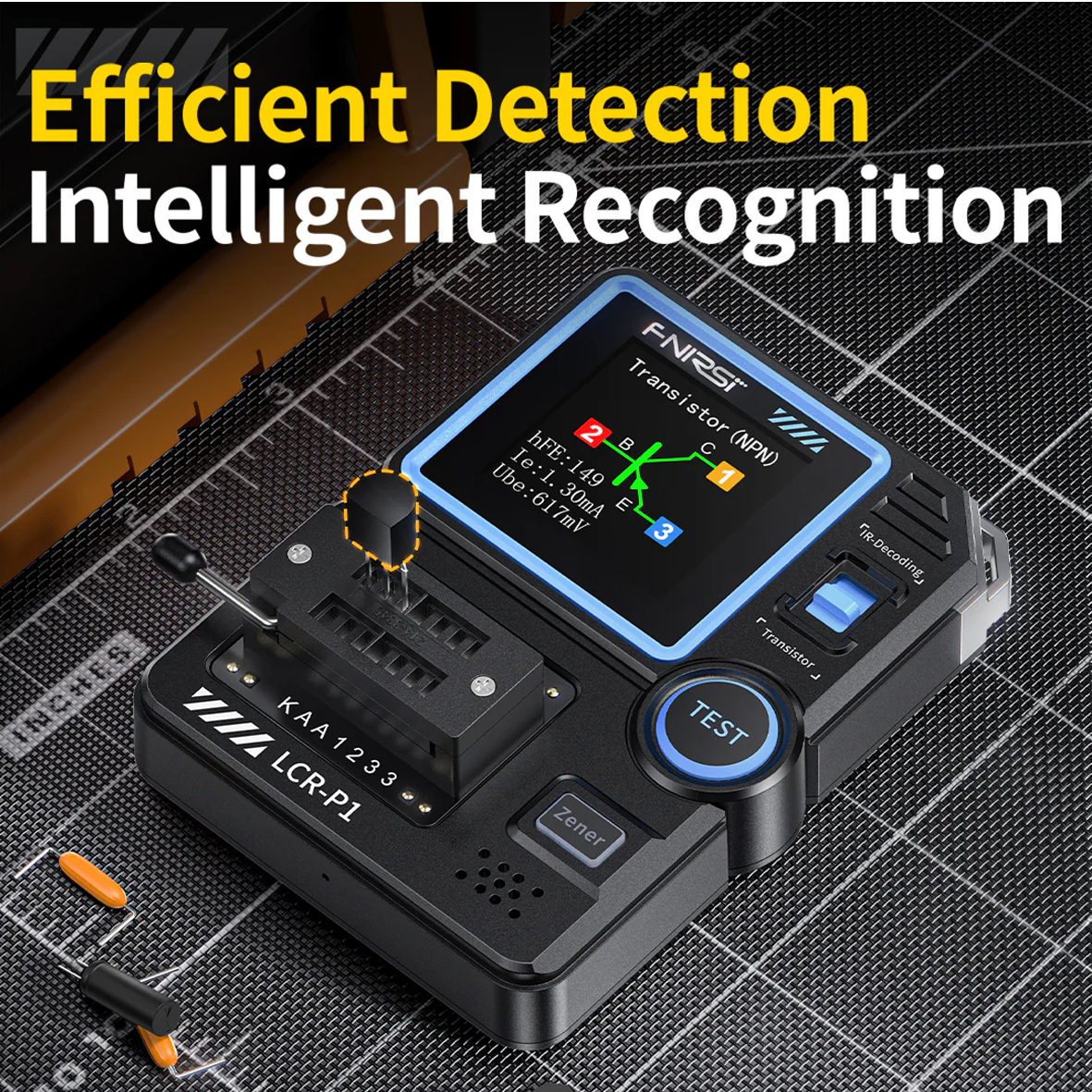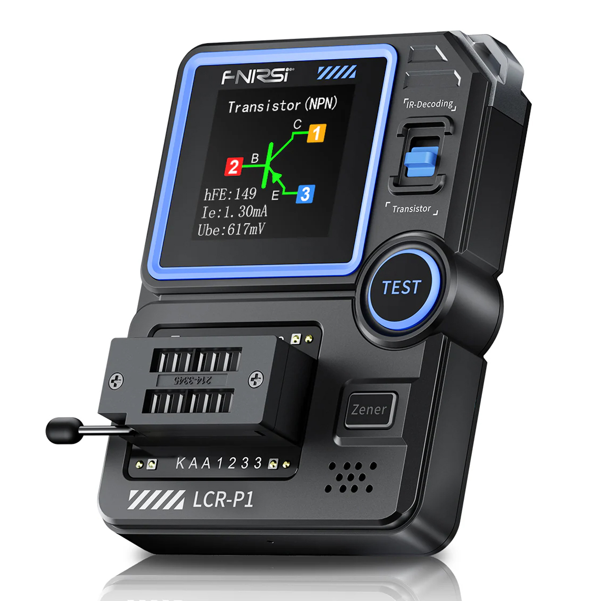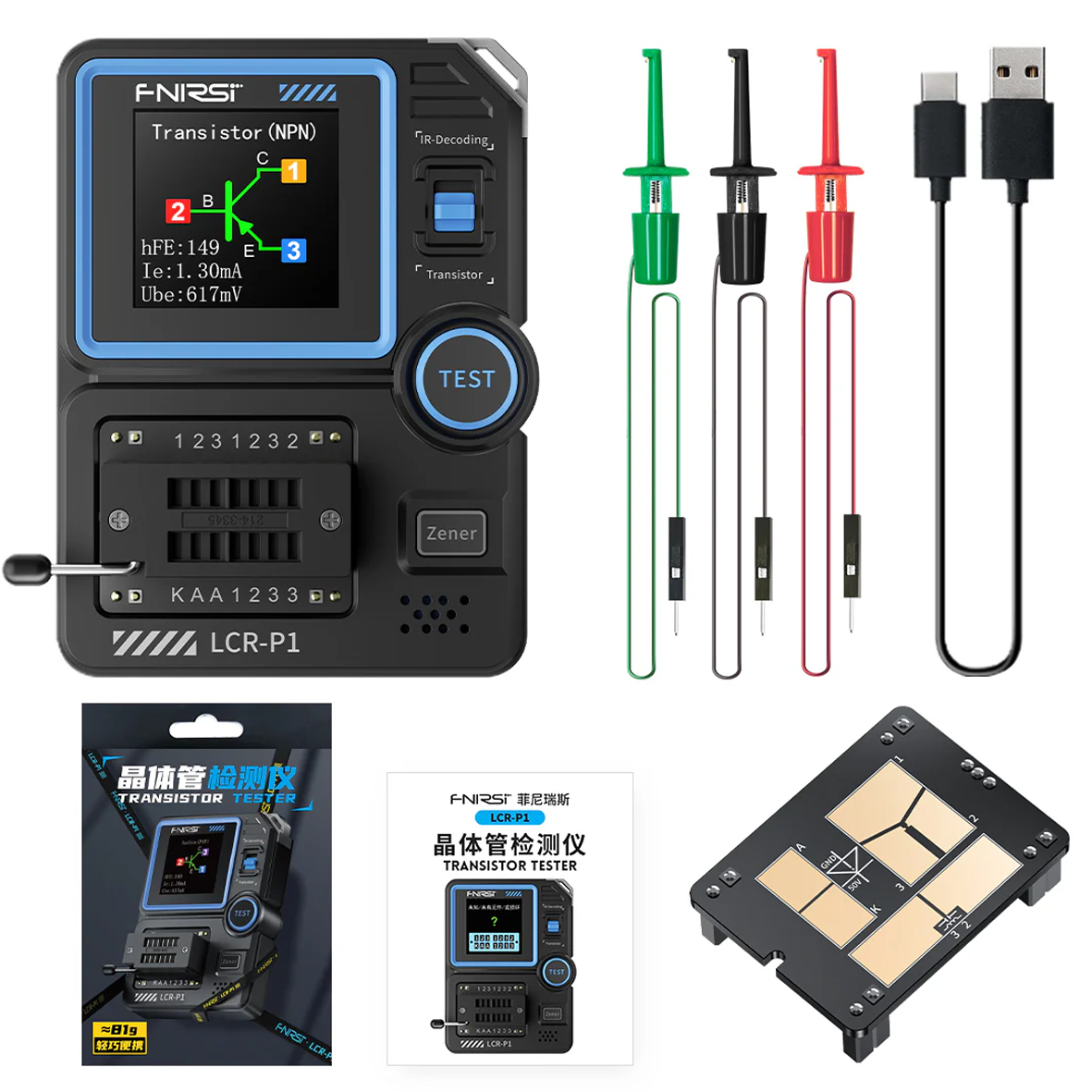 FNIRSI LCR-P1 — це високоточний багатофункціональний електронний вимірювальний прилад, розроблений спеціально для інженерів-електронщиків, техніків та ентузіастів, який призначений для виявлення та аналізу продуктивності та характеристик напівпровідникових компонентів, таких як транзистори, діоди, тріоди та польові транзистори (FET), вимірювання характеристик конденсаторів, котушок індуктивності, резисторів та акумуляторних батарей. Прилад оснащений кольоровим екраном та вбудованим акумулятором, він дозволяє проводити багатопараметричні вимірювання різних компонентів, автоматично ідентифікуючи їх та визначаючи розташування їх виводів, спрощуючи процес роботи та підвищуючи ефективність. Особливості: