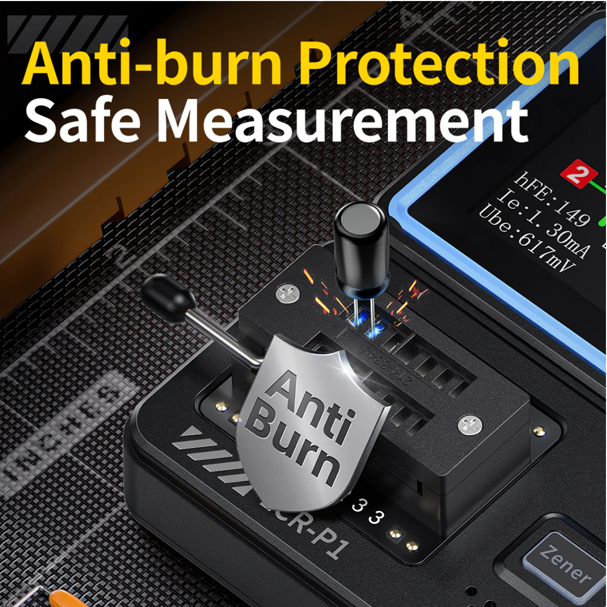 - Інтелектуальне розпізнавання: просте підключення та затискання компонентів, швидка ідентифікація їх параметрів натисканням однієї кнопки.