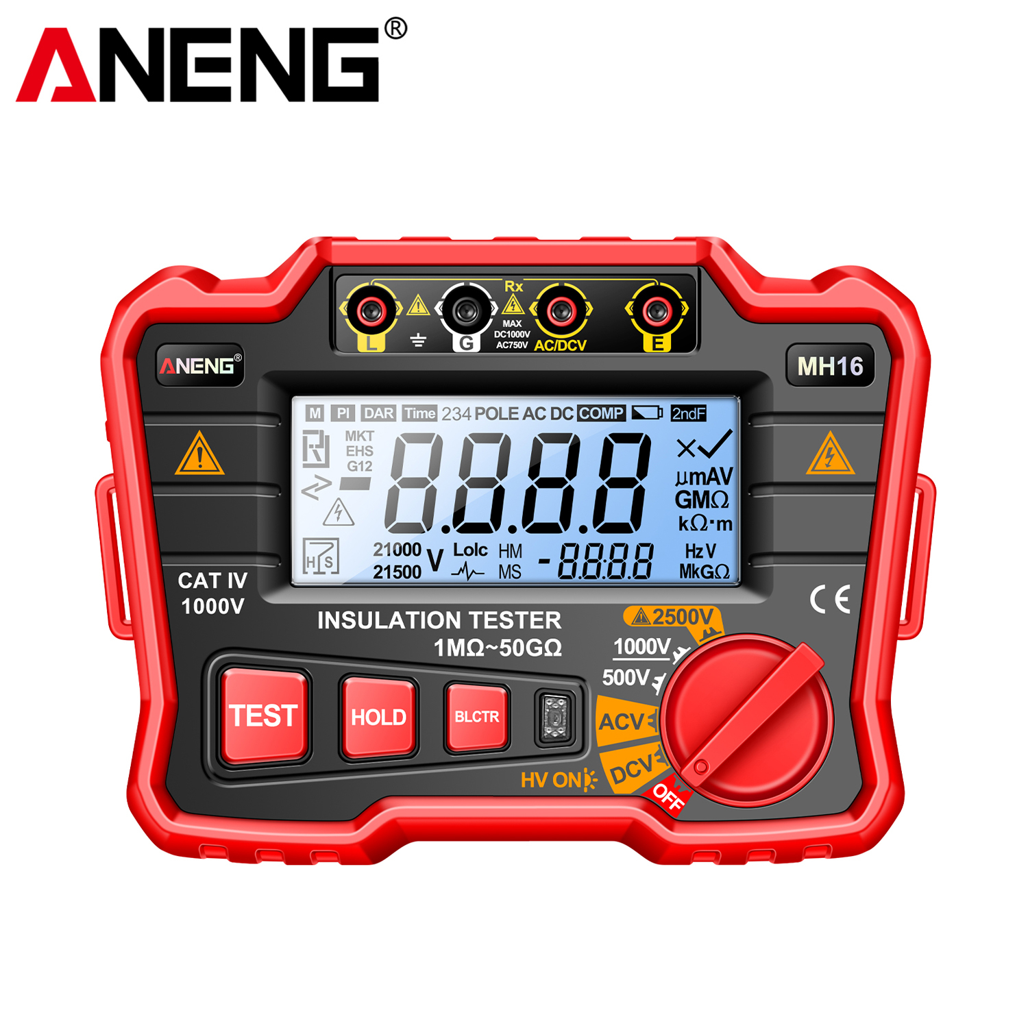 Тестер опору ізоляції Aneng MH16 750V AC/ 1000V DC Voltage, тест 500-2500V / 1МОм - 50ГОм, опір 0Ом - 50ГОм, LCD з підсвіткою