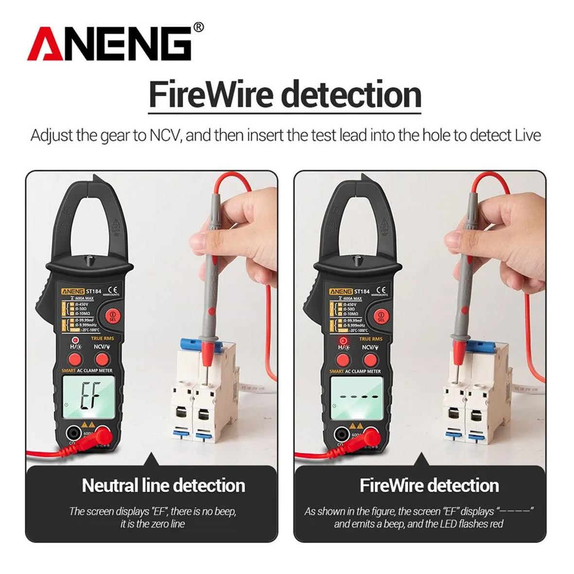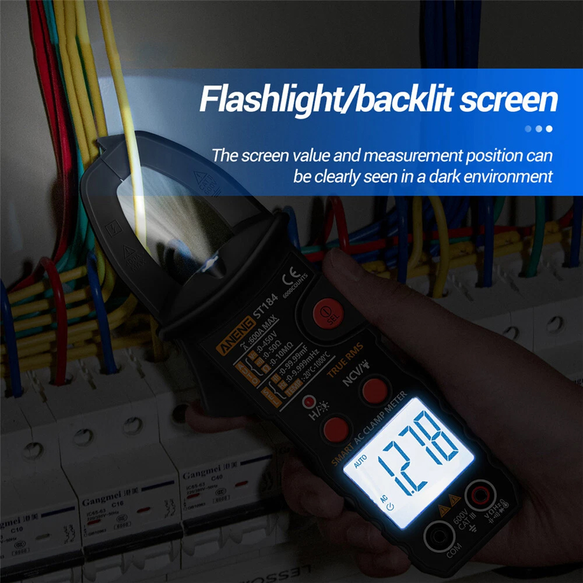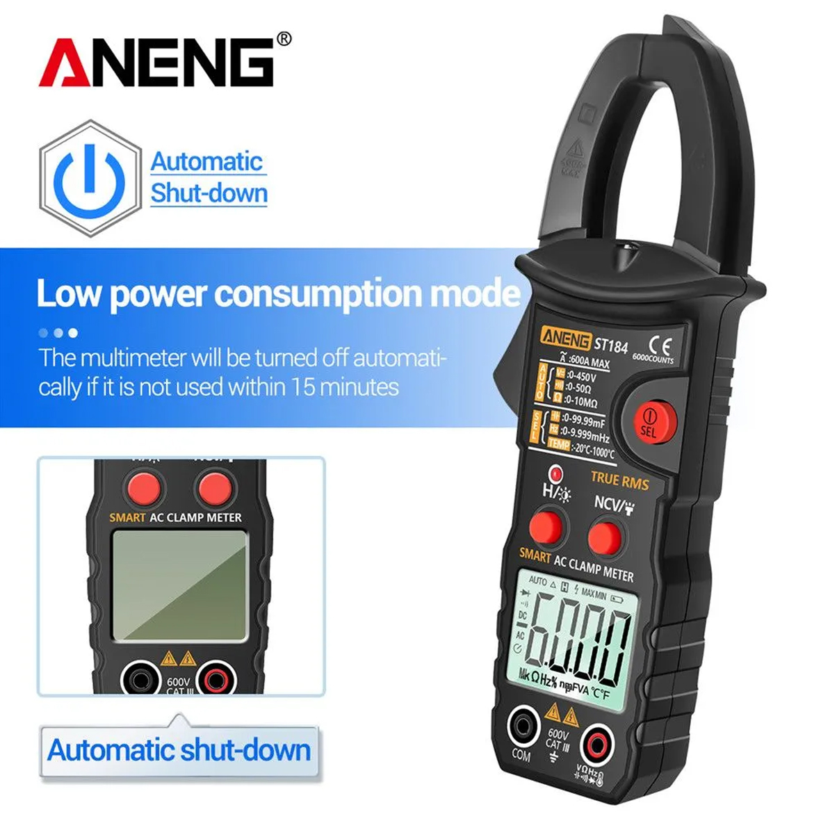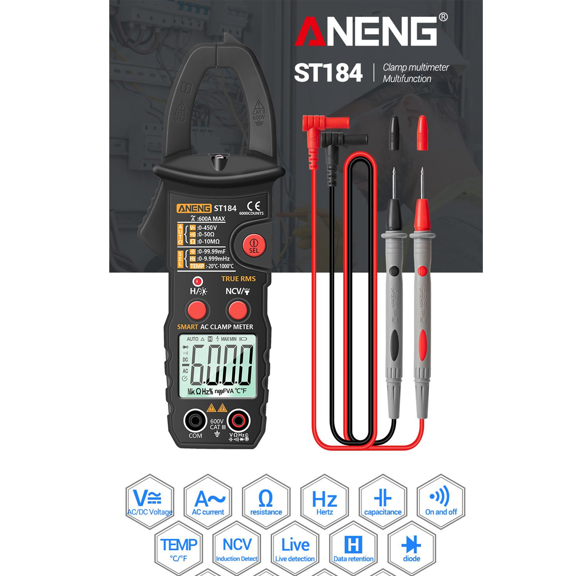 Струмові (токові) кліщі Aneng ST184 450V AC/DC Voltage, 600A AC Current, NCV, мультиметр, LCD з підсвіткою, True RMS