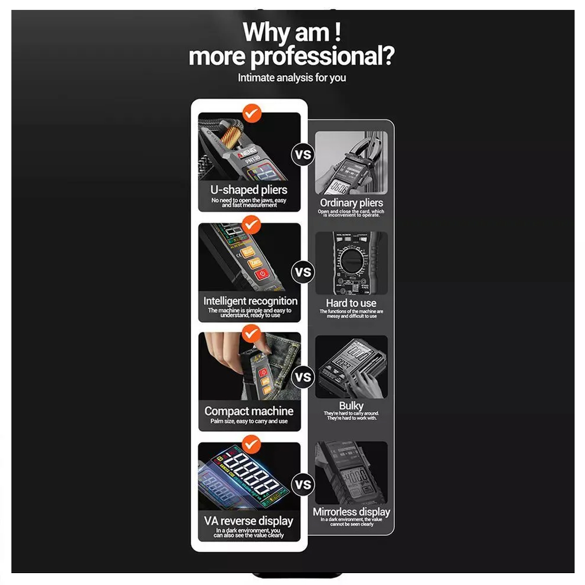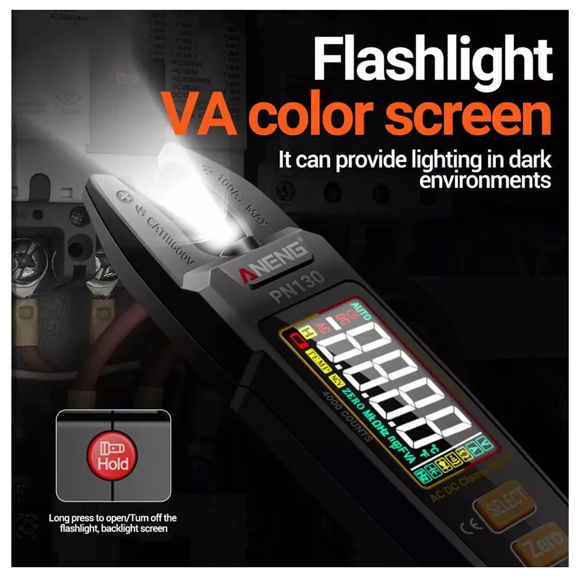 Струмові (токові) кліщі Aneng PN130 600V AC/DC Voltage, 100A AC/DC Current, NCV, мультиметр, VA кольоров. дисплей