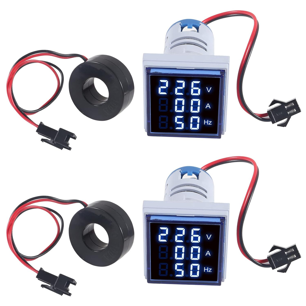 Цифровий індикатор, який одночасно відображає напругу, струм, частоту в електричній мережі. В комплекті постачається трансформатор току кільцевого типу (надівається на один із силових дротів електромережі живлення), за допомогою якого вимірюється сила току 0-100Ампер. Просте підключення, надійність, точність вимірювань, відсутність додаткових налаштувань. ОСОБЛИВОСТІ: Вольтметр змінного струму / амперметр, трансформатор току в комплекті Діапазон вимірювання напруги: 60-500В Діапазон вимірювання сили струму: 0-100А Монтажний отвір: 22мм Розмір панелі: 31х31мм