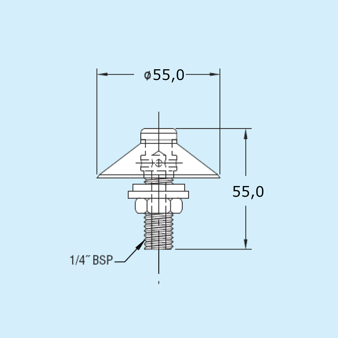 Віброаератор - пристрій вібраційної аерації силосу (силікон + нержавіюча сталь), діам. 55 мм, різьба G1/4 зовн. (G3/8 внутрішня)