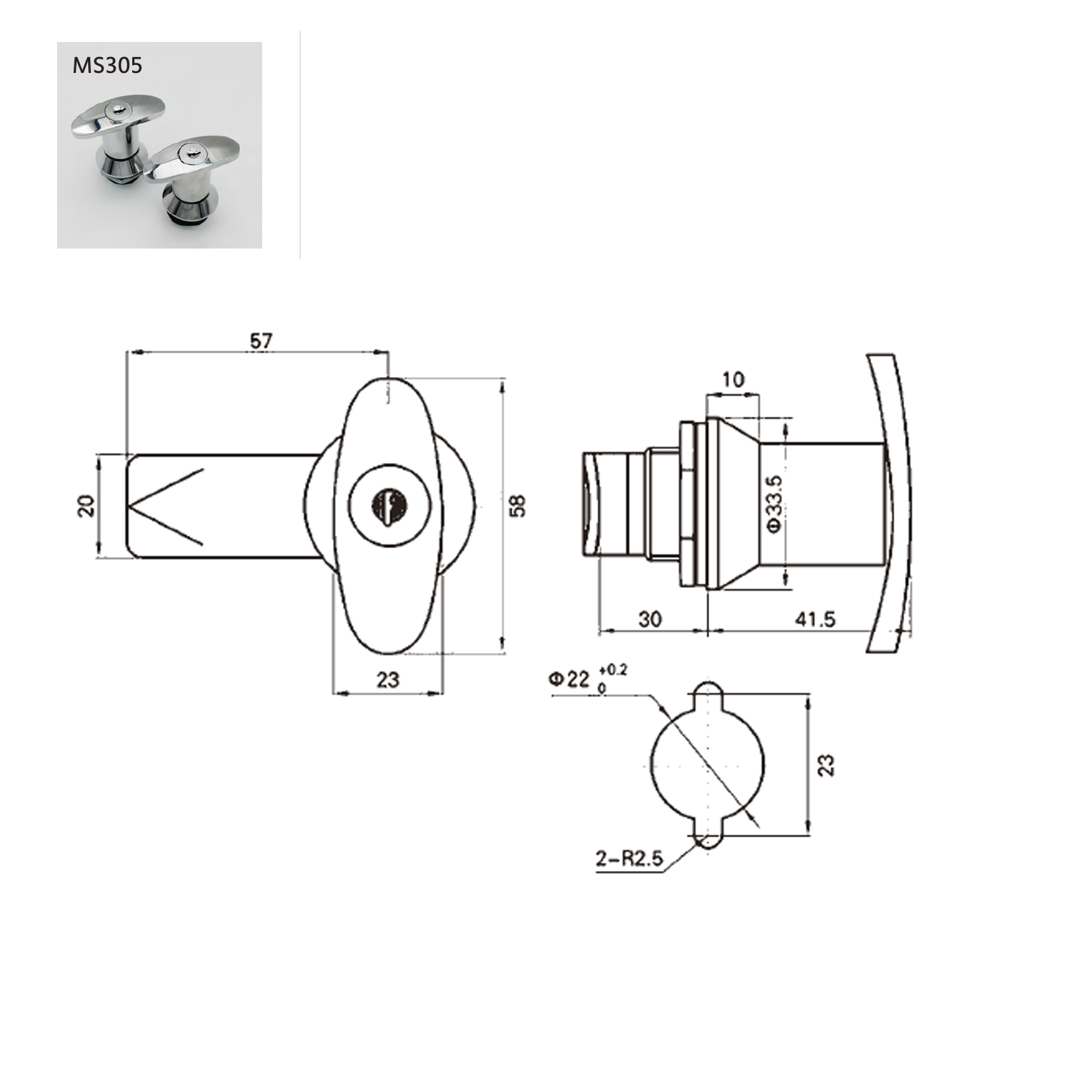 Замок - ручка з ключем поворотний Т-подібний код MS-305