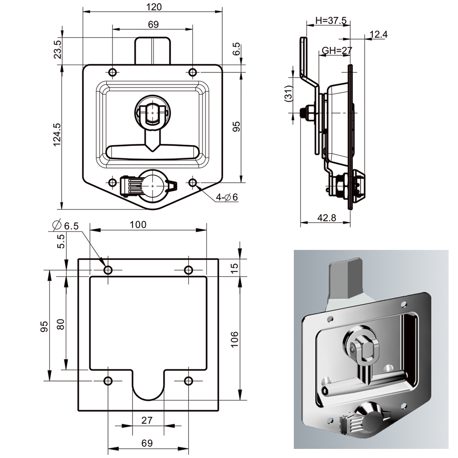 Замок нержавіючий кузовний з ключем код A7822-1150