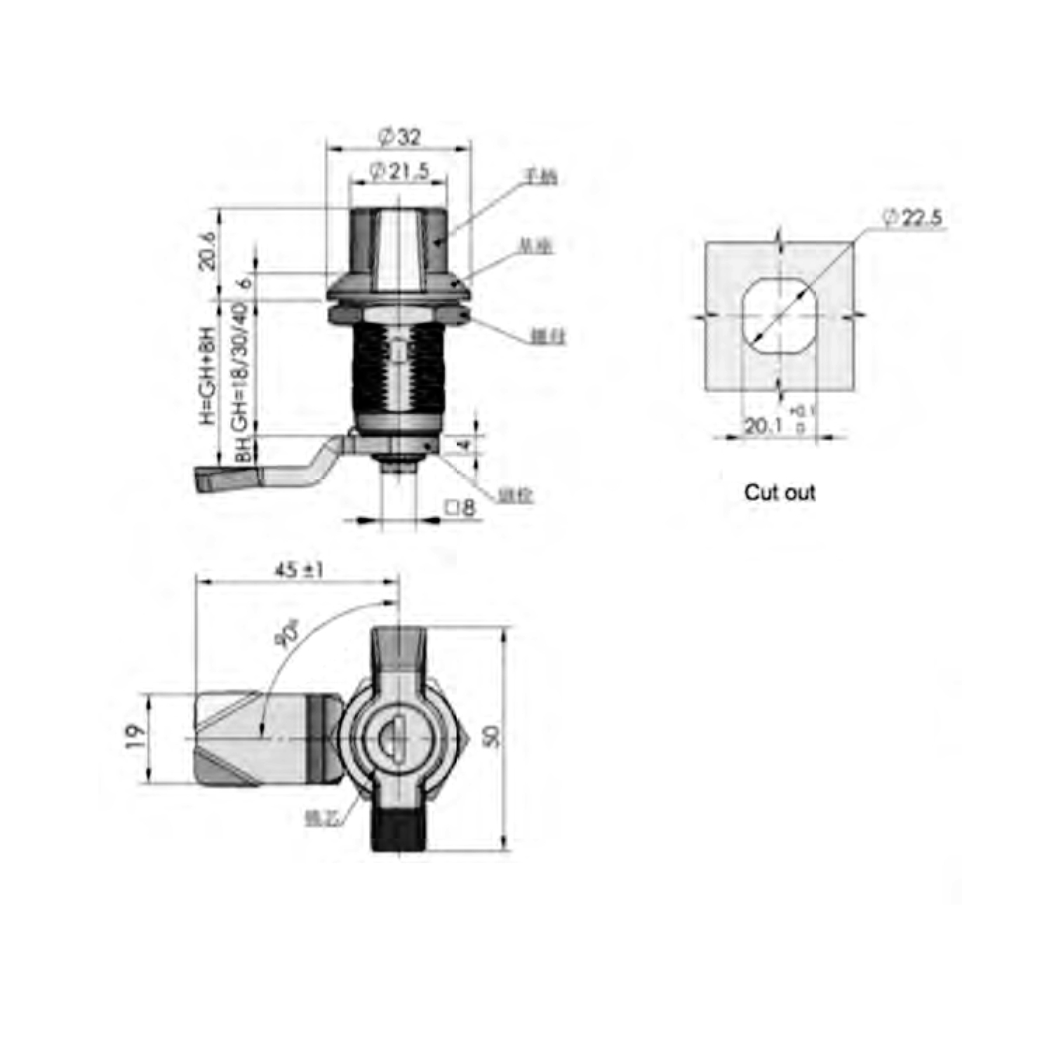 Замок з ручкою для щитів з ключем код MS-748-1