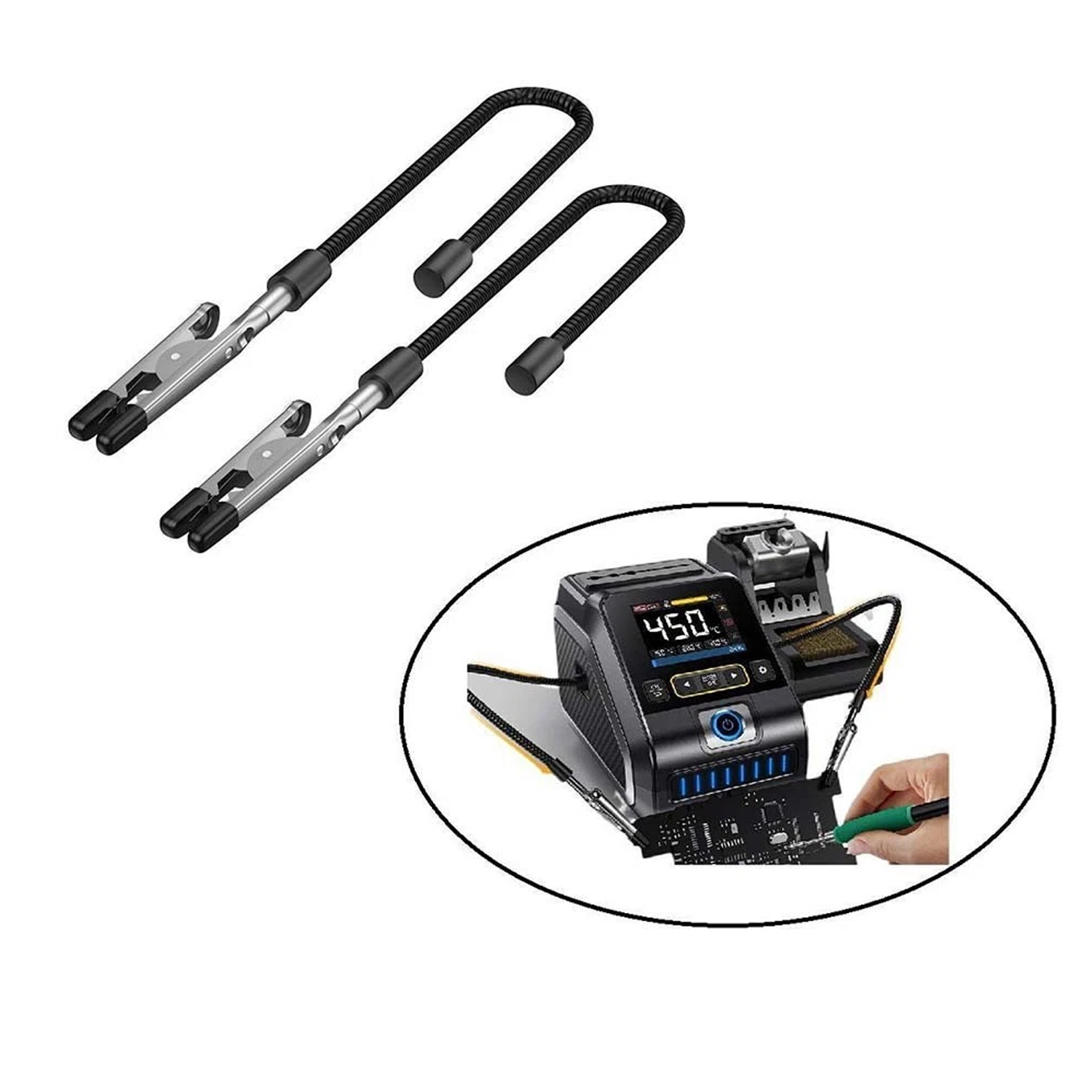Комплектация: 1 пара паяльных зажимов («крокодил») с гибкой конечностью
