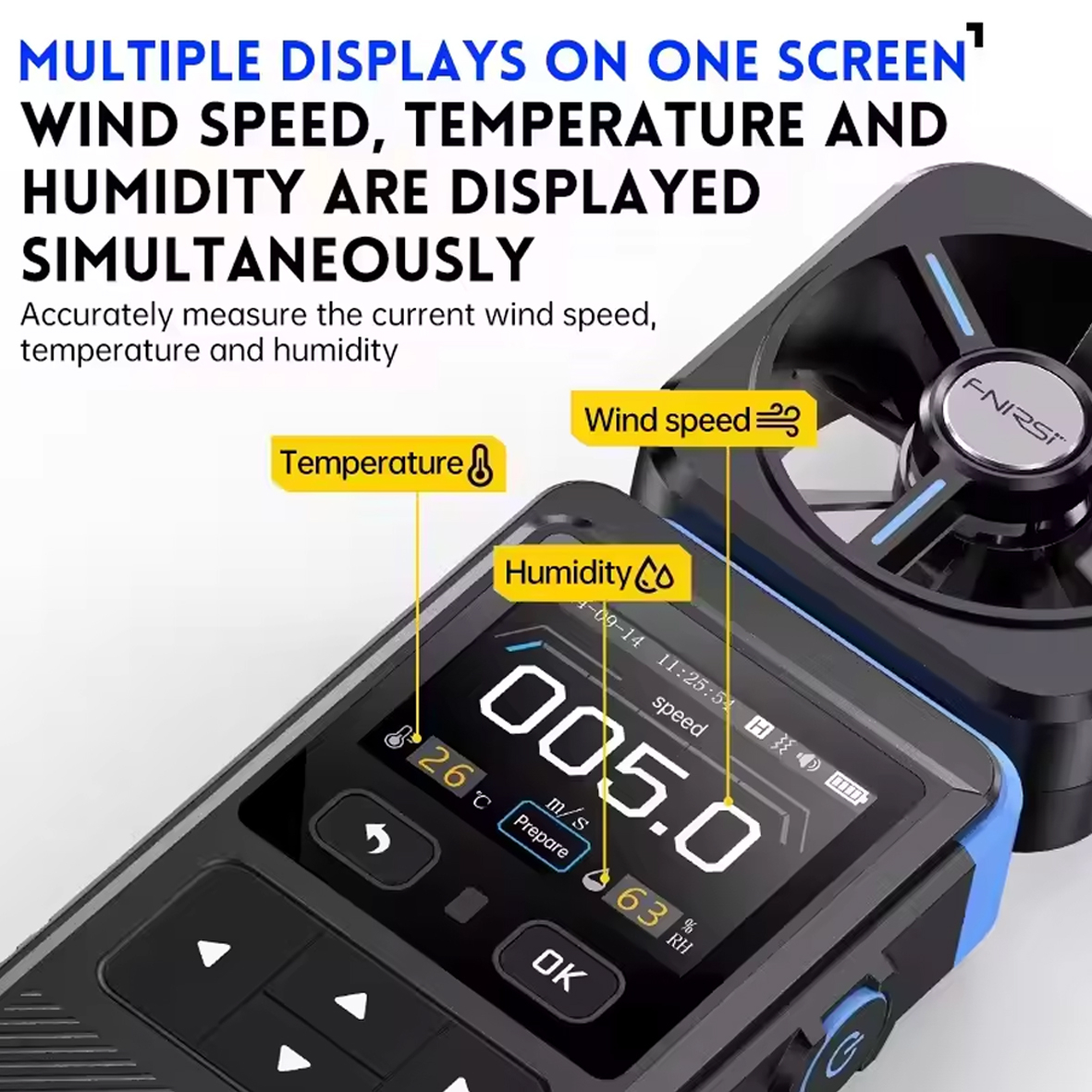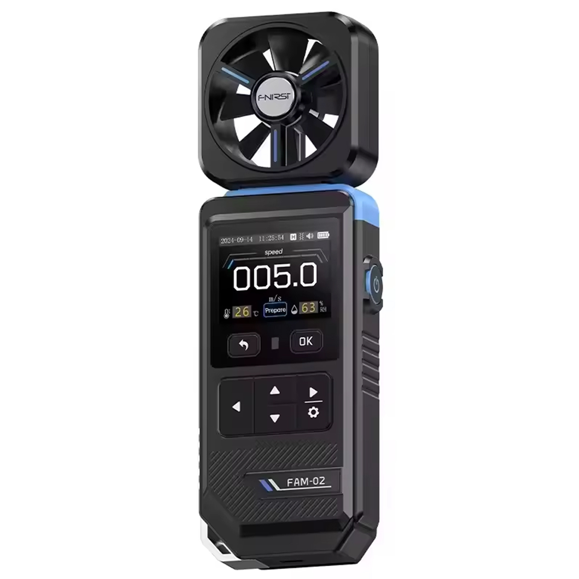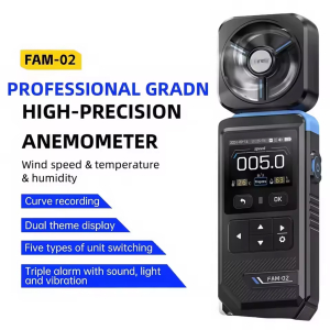 FNIRSI FAM-02 – это компактный и точный портативный анемометр 3 в 1, который в режиме реального времени измеряет среднюю скорость ветра, температуру окружающей среды и относительную влажность. Оснащенный цветным ЖК-дисплеем с подсветкой и вращающимся давателем, он идеально подходит для любителей активного отдыха, метеорологов, специалистов по системам отопления, вентиляции и кондиционирования воздуха и т.д.