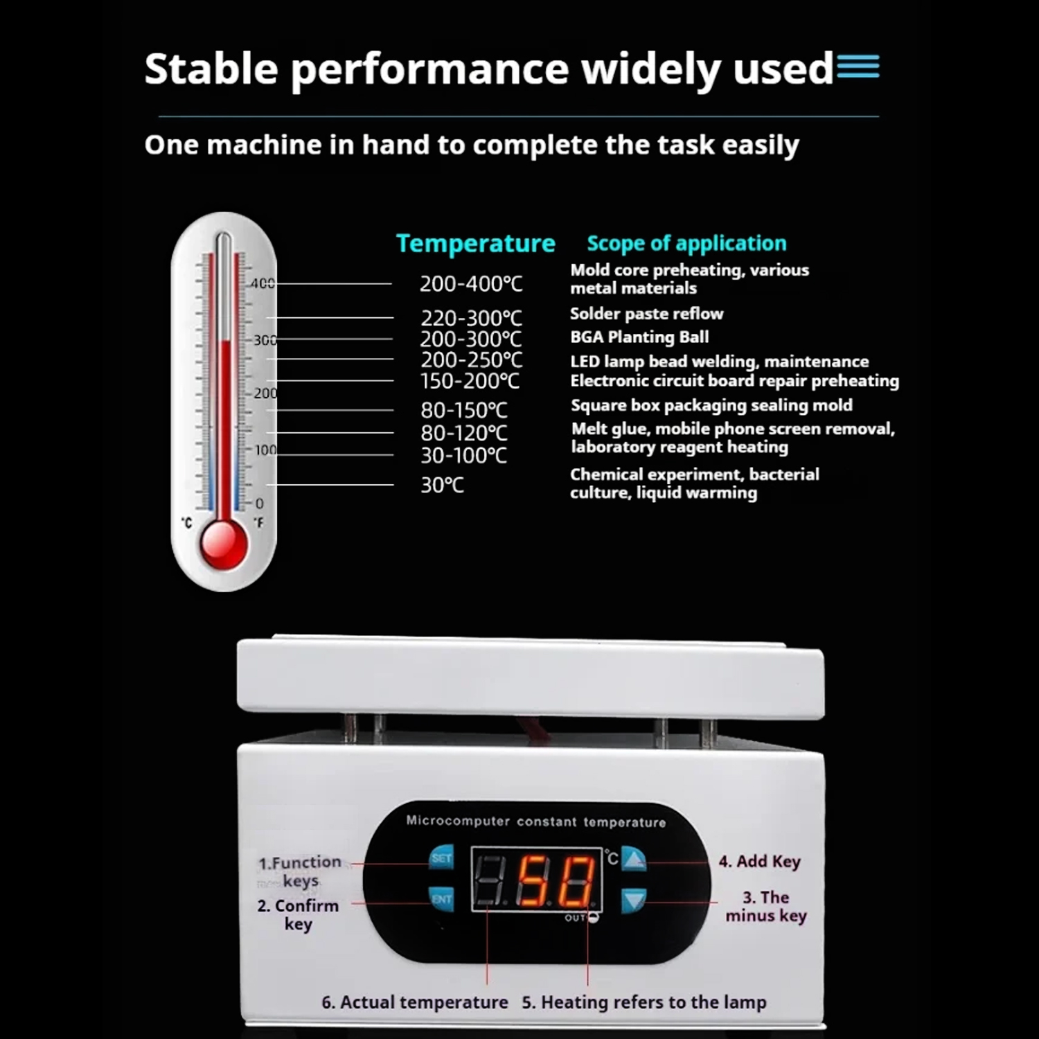 - Размер нагревательной поверхности: 150мм x 150мм